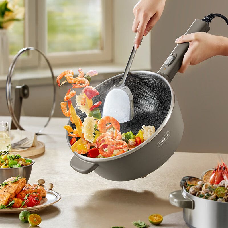 小熊电炒锅DCG-R29Q7带蒸笼 电火锅电蒸锅电煮锅5L多功能一体锅蜂窝晶盾不粘锅
