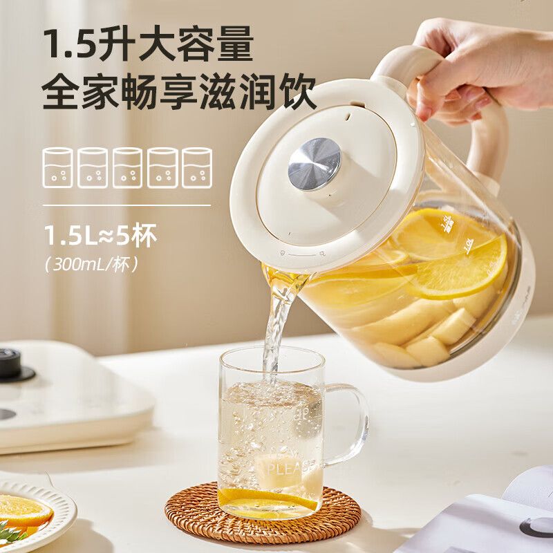 小熊养生壶YSH-D15T3 电水壶烧水壶多功能煮茶器玻璃花茶壶 智能保温1.5L
