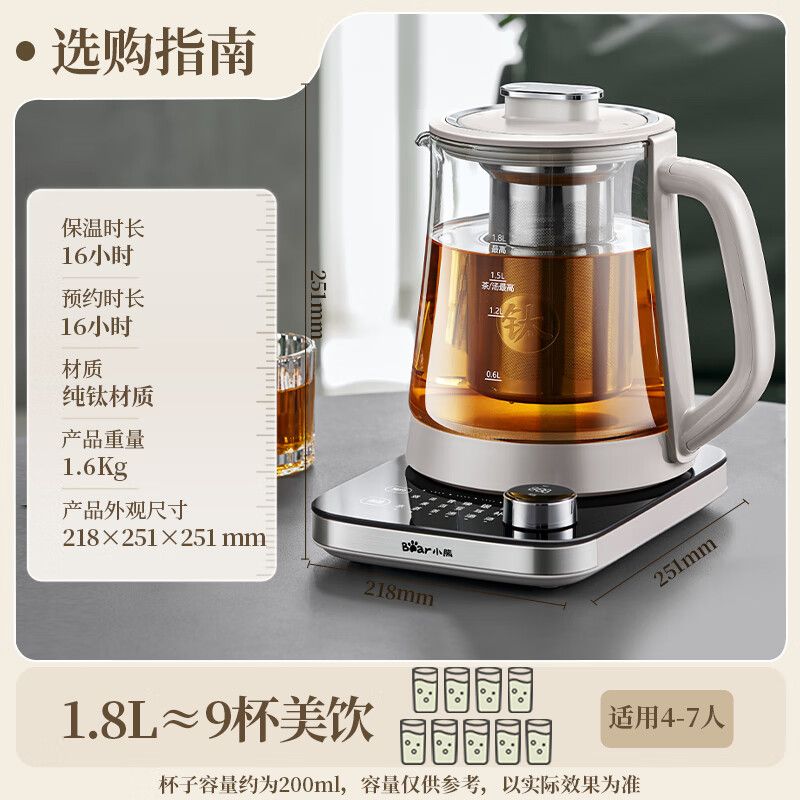 小熊(Bear)全钛养生壶YSH-E18K1 烧水壶 1.8升家用恒温水壶煮茶器煮茶壶 加大滤网