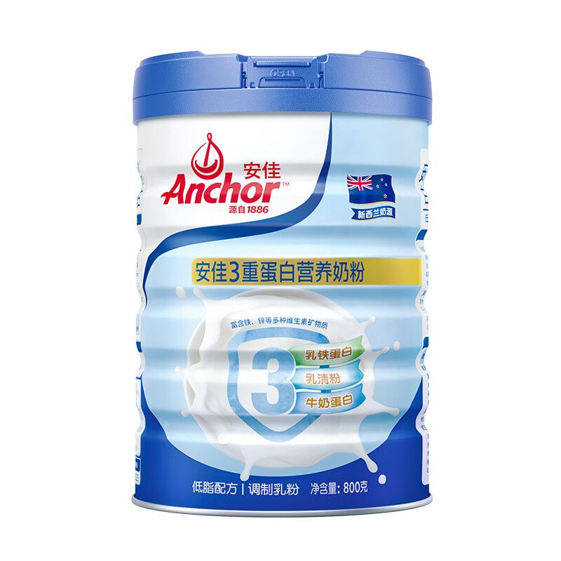 安佳(Anchor)低脂3重蛋白 成人奶粉800g罐装 新西兰进口奶源 含乳铁蛋白