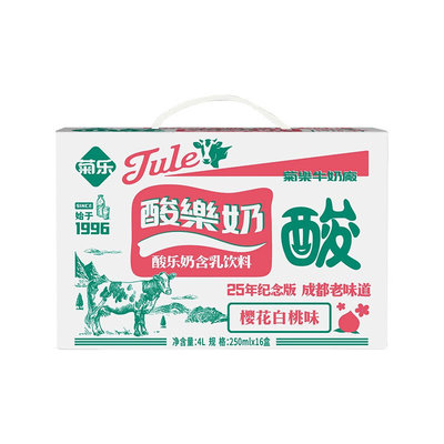菊乐 酸乐奶含乳饮料 樱花白桃味 250ml*16盒