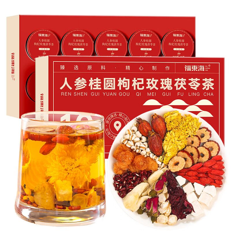 【福东海】人参桂圆枸杞玫瑰茯苓茶150克(15克x10罐)/盒