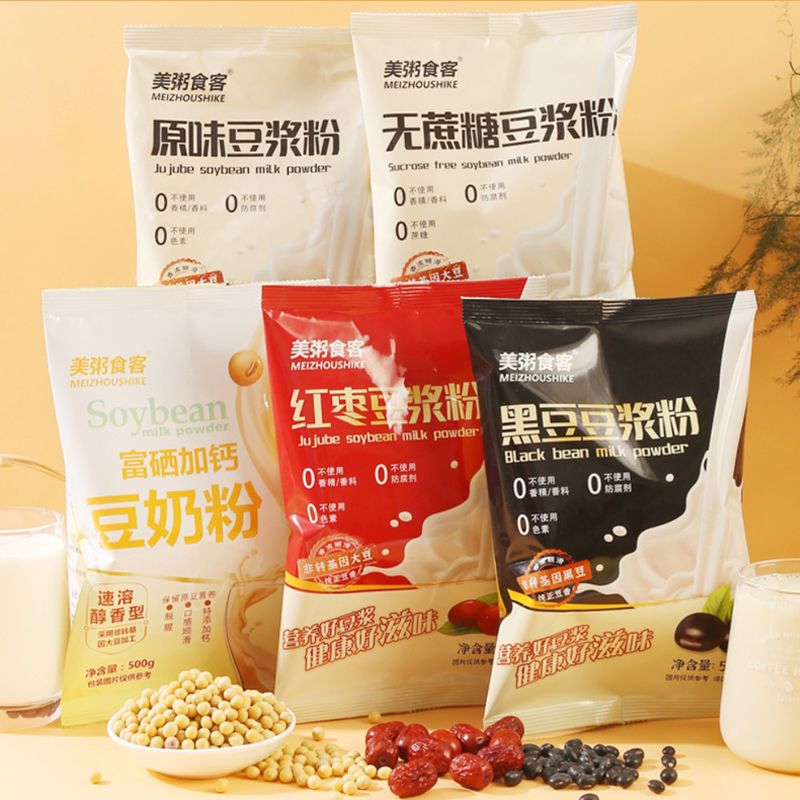 美粥食客 豆浆粉500g无蔗糖红枣黑豆加钙豆奶粉 多款可选 营养早餐