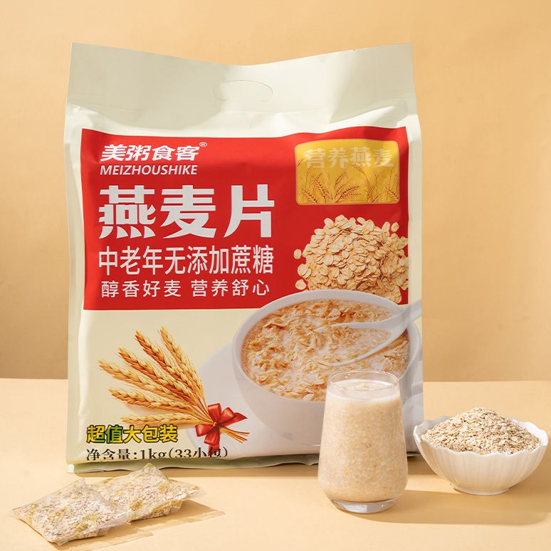 美粥食客 燕麦片(中老年无添加蔗糖)1kg 内含独立33小包