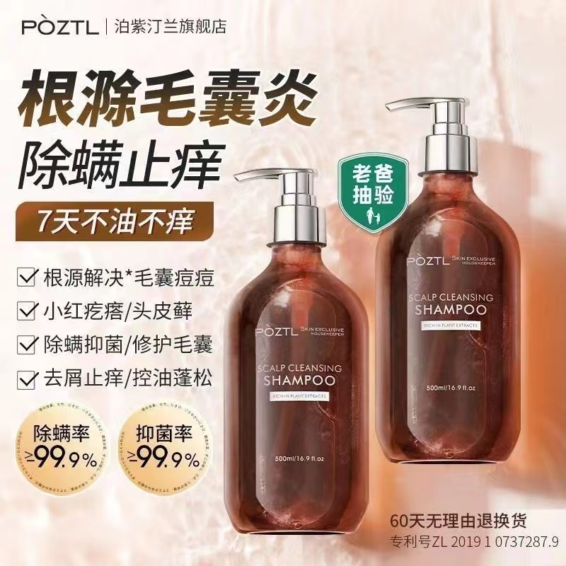 泊紫汀兰毛囊洗发水除螨去屑止痒控油蓬松炎氨基酸洗头膏男士女士成人洗发露正品500ml