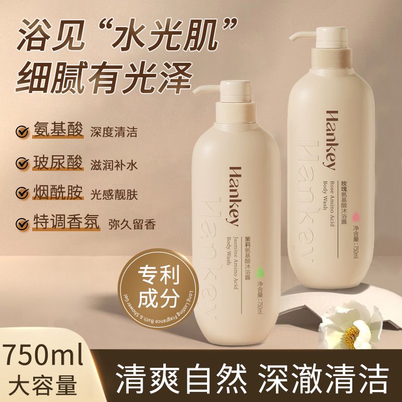 Hankey/韩纪 玫瑰茉莉氨基酸沐浴露750ml 全绿配方