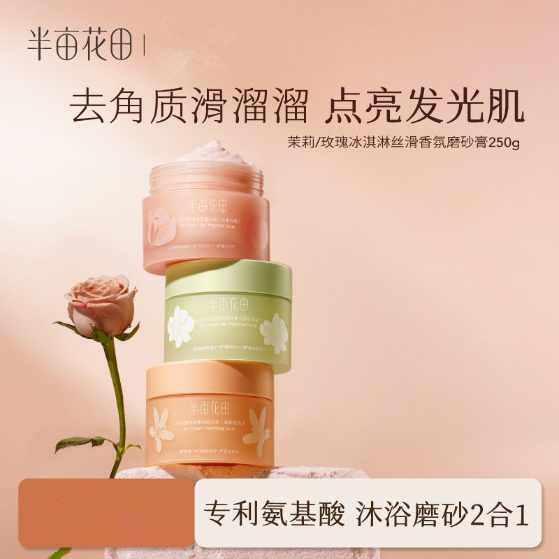 半亩花田冰淇淋丝滑香氛磨砂膏250g 去角质疙瘩保湿滋润果酸沐浴全身女夏季