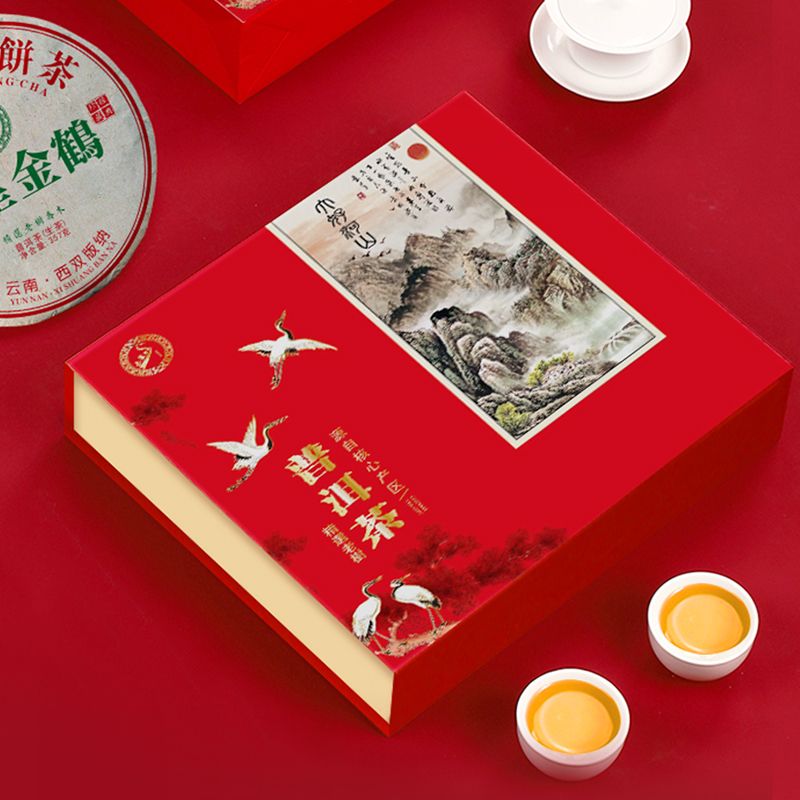 吉星金鹤英红九号红茶/普洱生茶普洱生茶【礼盒装】357克*1饼