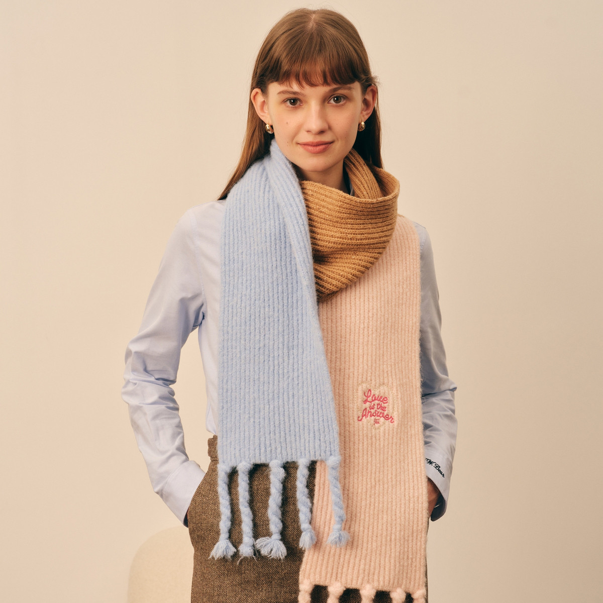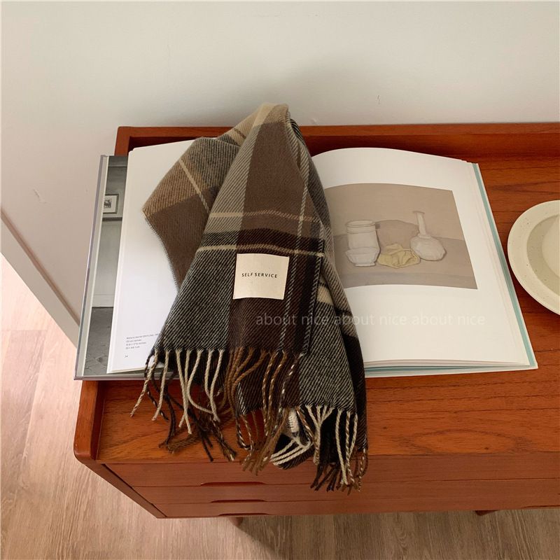 小熊春秋款蓬松保暖围巾撞色格纹多巴胺穿搭 506945