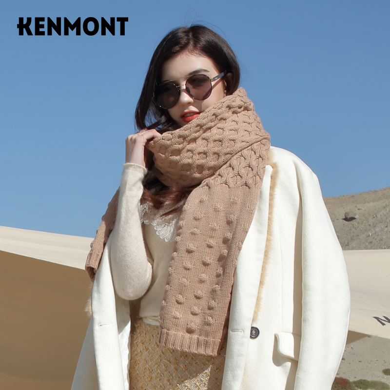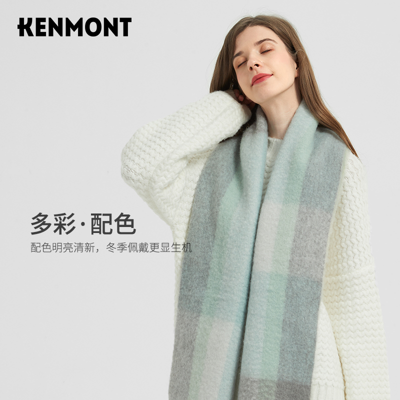 卡蒙亲肤绵羊毛时尚韩版百搭格子流苏围巾女冬天舒适保暖毛绒围脖KM-1921