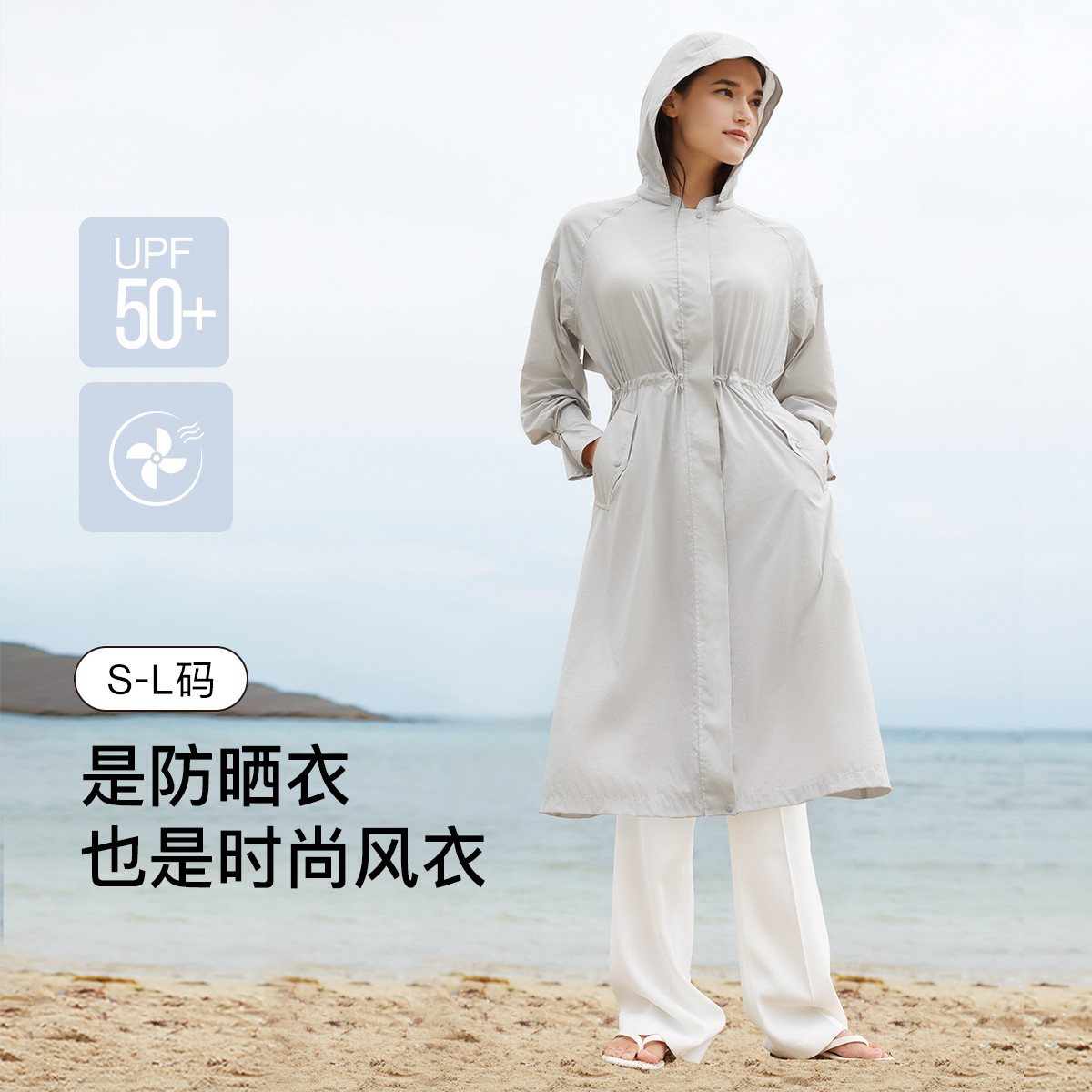 【舒适休闲】蝉翼长款防晒衣防紫外线收腰薄款连帽防晒外套女 537280