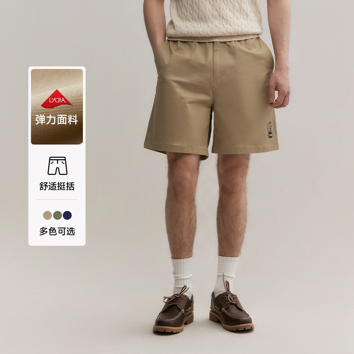 短裤小熊男装简约舒适时尚潮流休闲短裤男夏季直筒弹力运动裤 419457