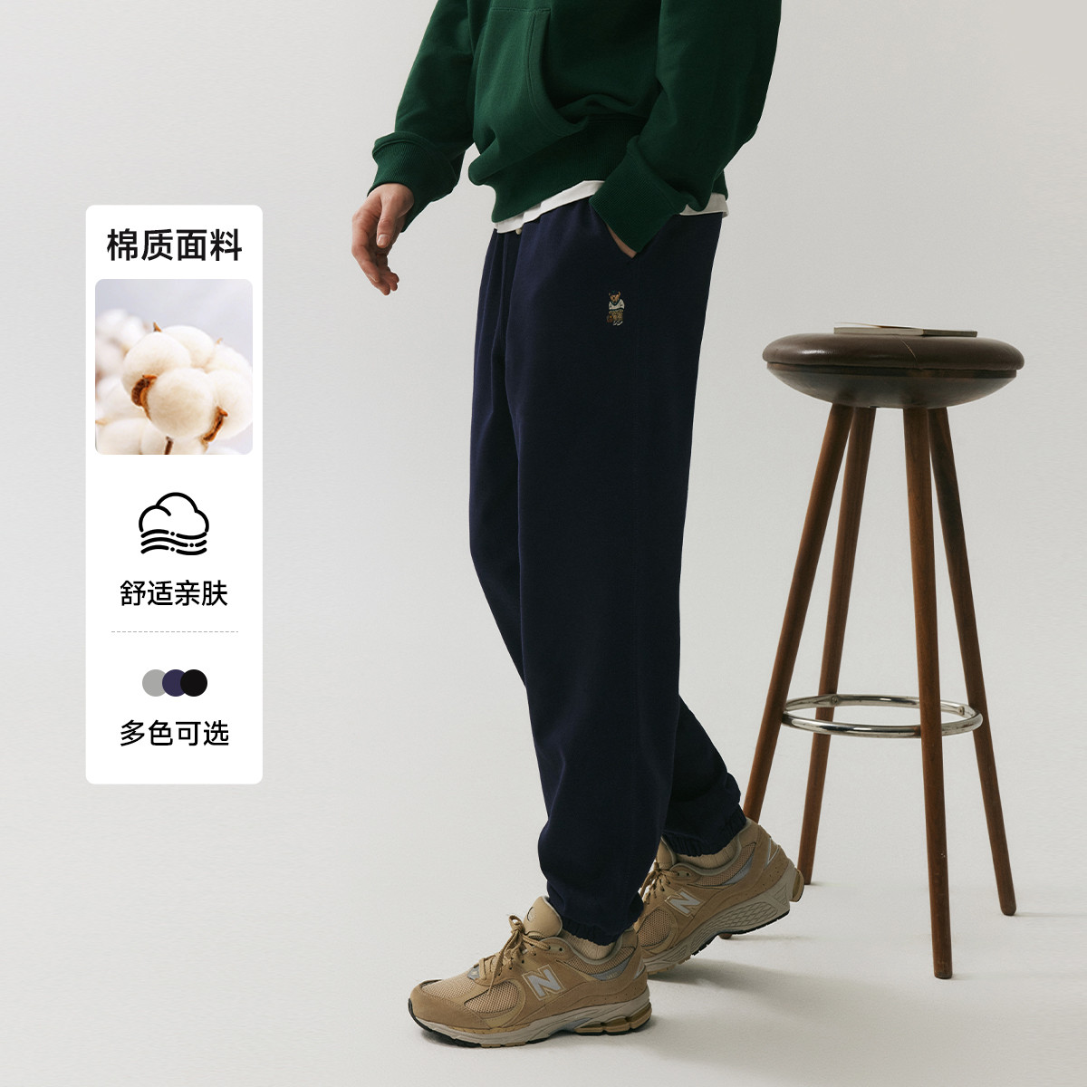 小熊男装春夏简约舒适时尚潮流潮牌运动裤宽松直筒休闲裤夏季裤子 131585