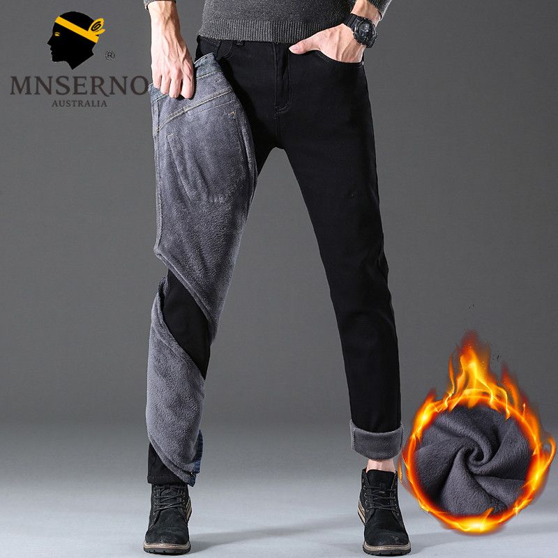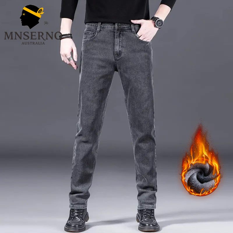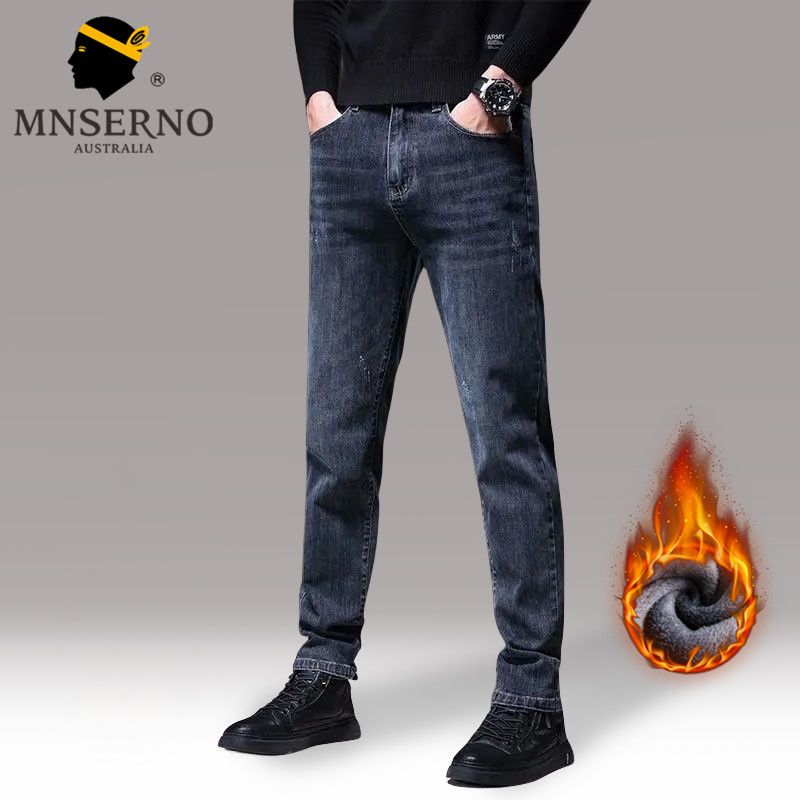 曼西尔奴冬季男士直筒百搭加厚加绒保暖休闲牛仔裤125346TM