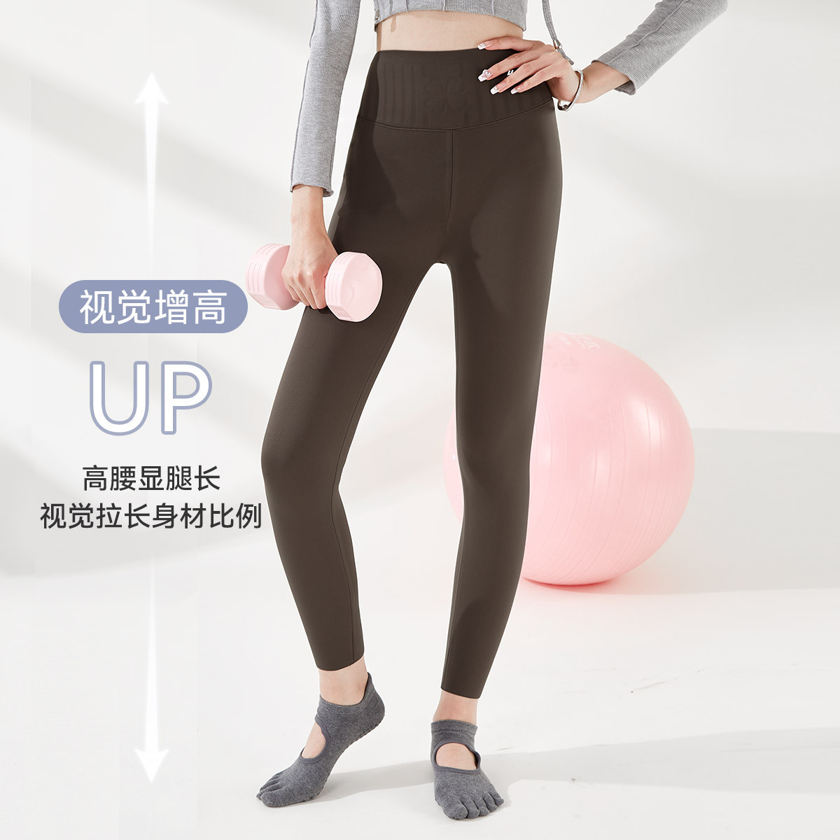 收腹无尴尬线瑜伽裤女冬季加绒高腰提臀鲨鱼裤跑步健身裤芭比裤 862611
