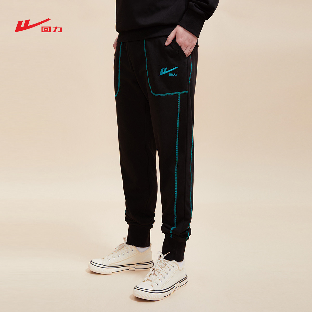 春秋时尚潮流撞色束脚宽松针织休闲裤卫裤男女同款 023187