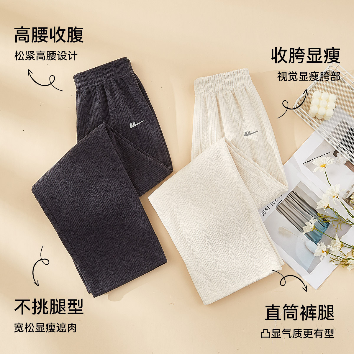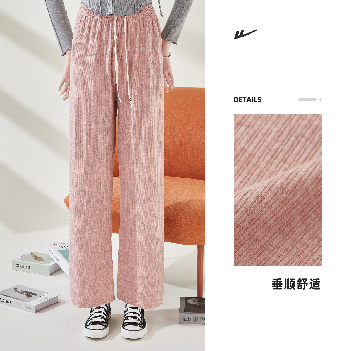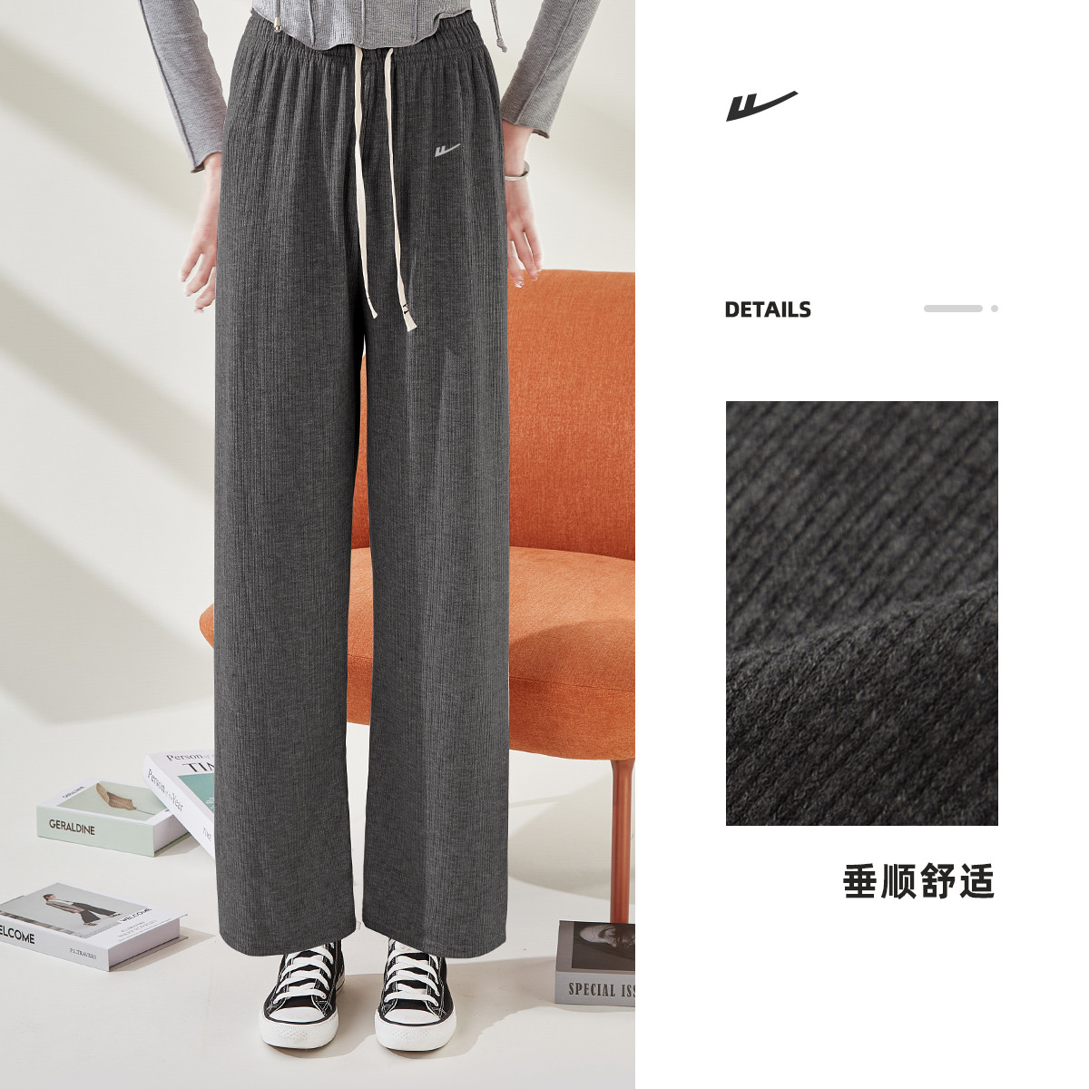 高腰遮胯运动裤女秋冬阔腿裤慵懒风休闲裤针织拖地裤修身显瘦长裤 927763
