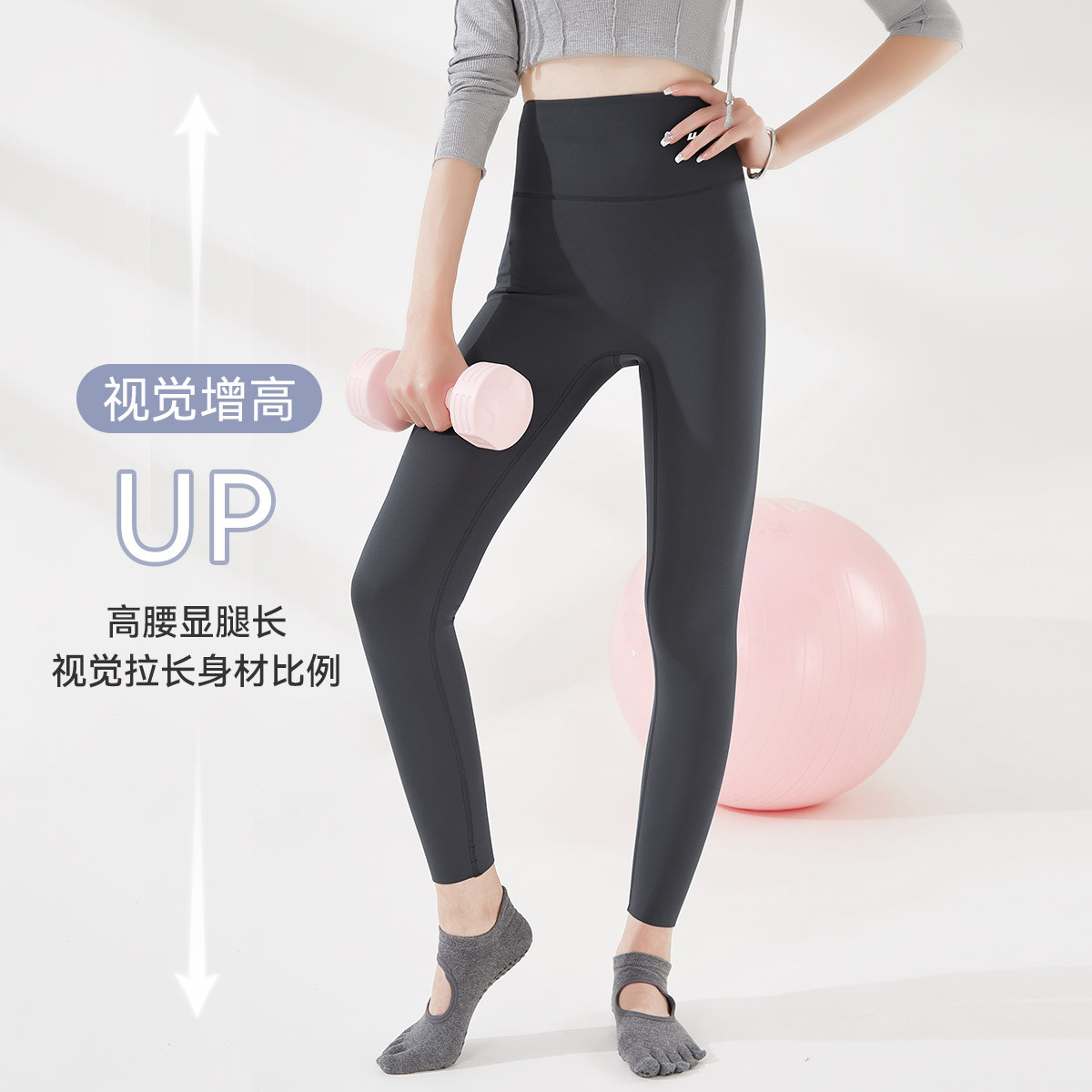 收腹无尴尬线瑜伽裤女冬季加绒高腰提臀鲨鱼裤跑步健身裤芭比裤 874899
