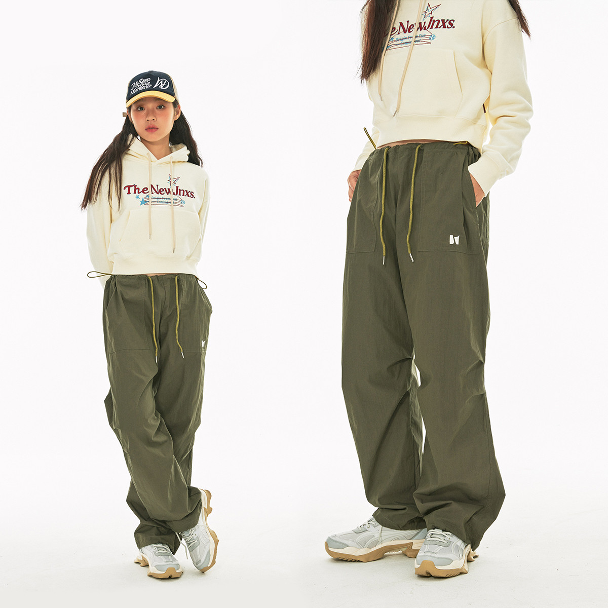江南先生美式复古纯色百搭系绳休闲裤男女潮牌宽松伞兵裤工装裤 042385