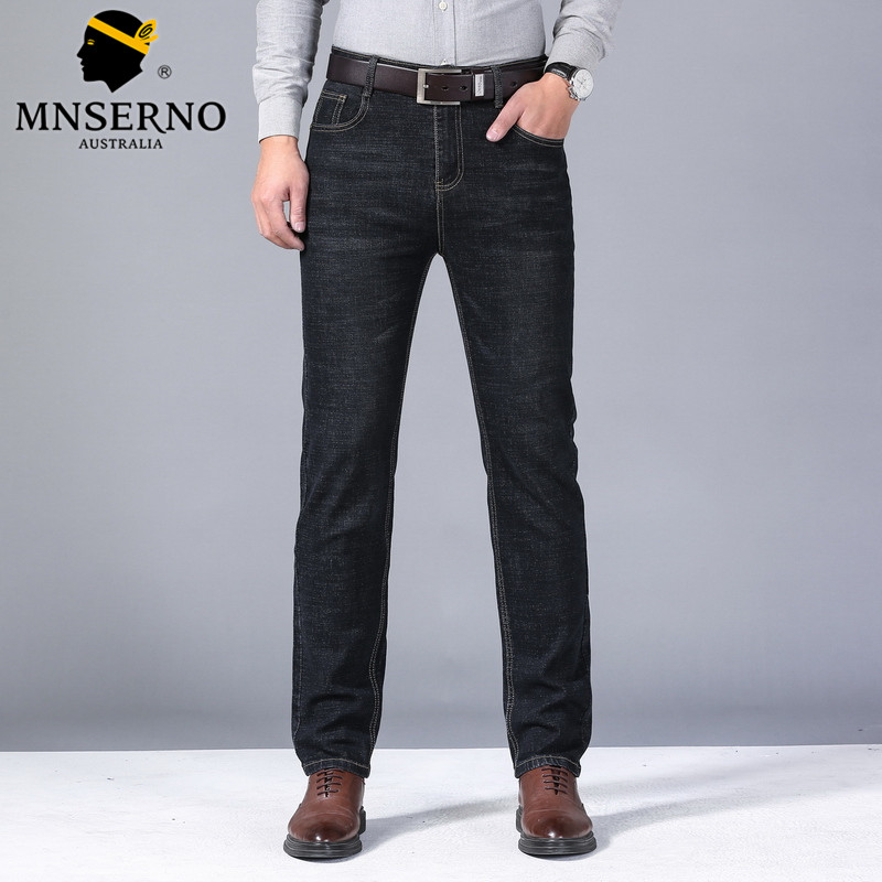 曼西尔奴男士棉质透气简约舒适商务合体中腰直筒弹力潮流百搭牛仔裤115362TM
