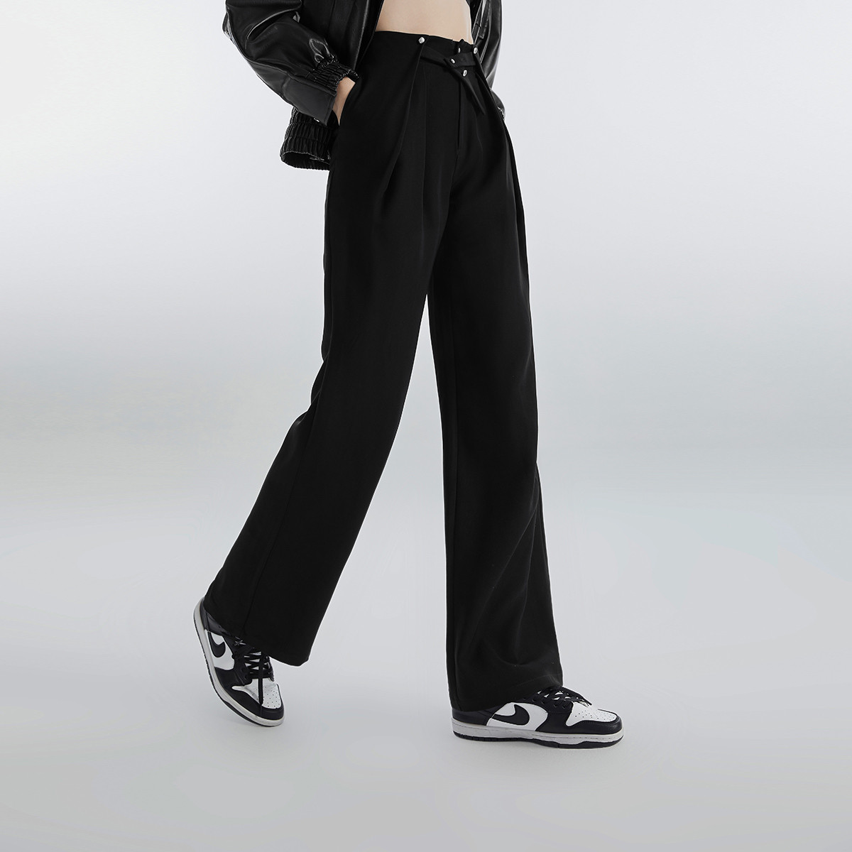 不规则显瘦设计春秋梭织黑色休闲裤女复古小众阔腿裤 330772
