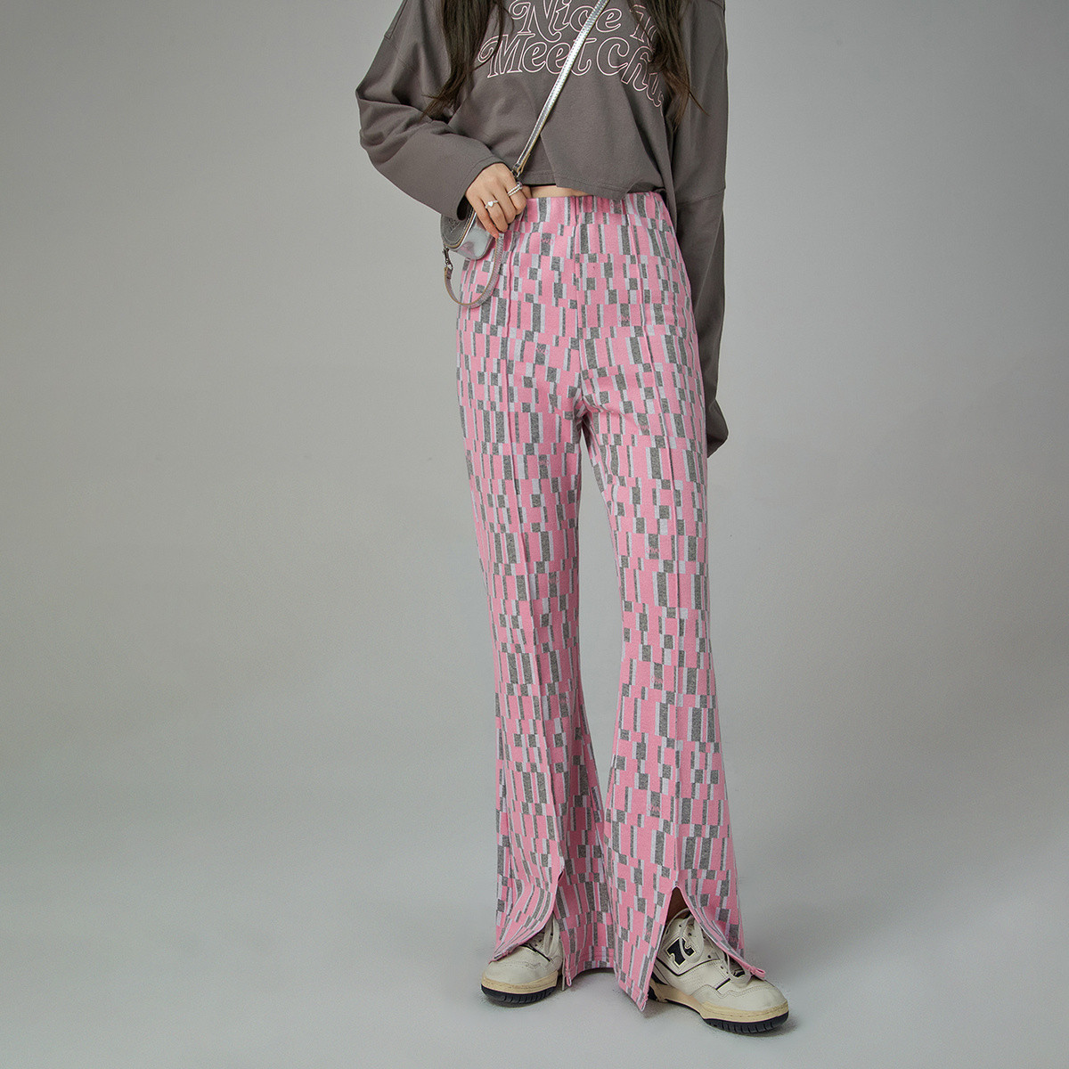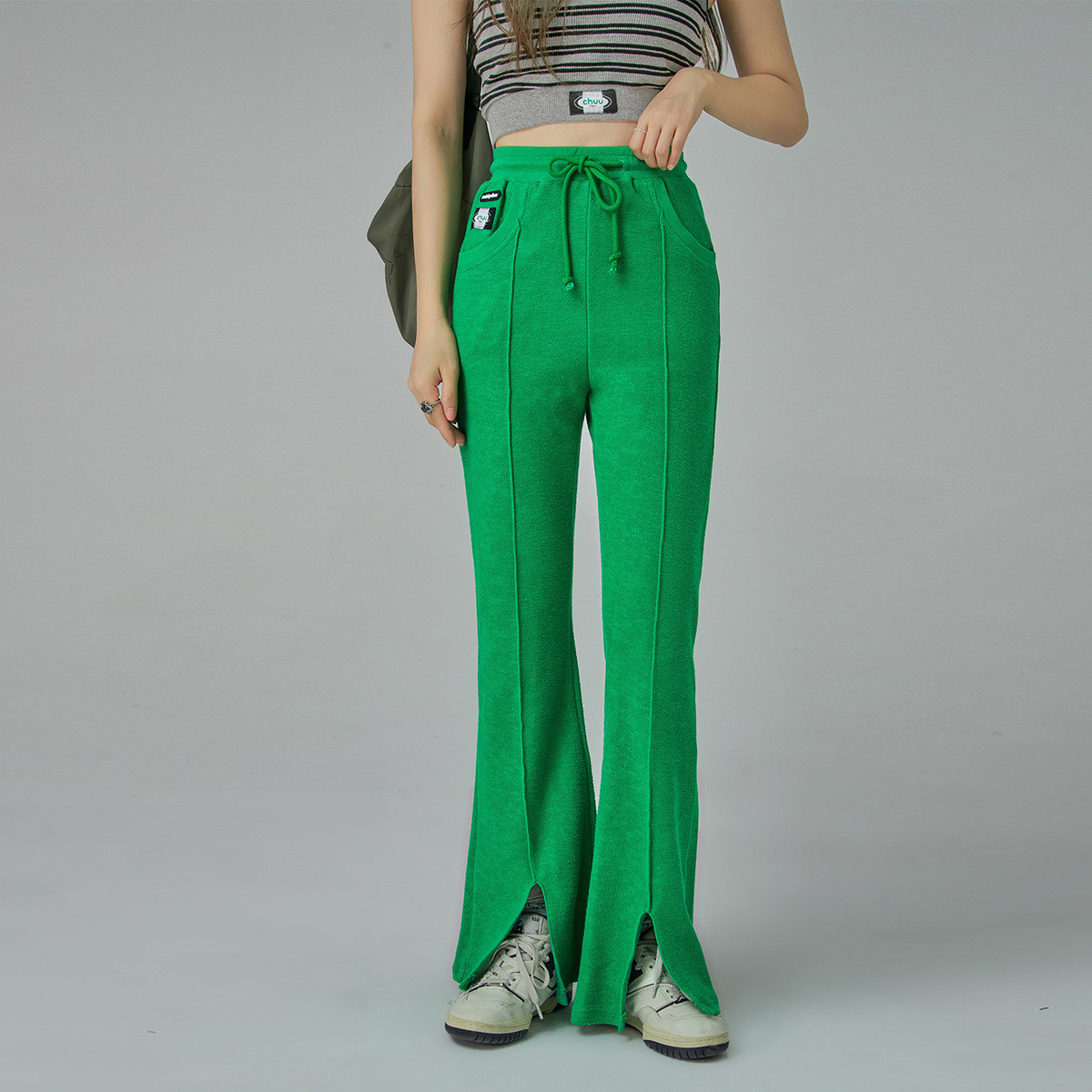 设计感高腰休闲裤女士春秋季裤脚开叉微喇潮流长裤子 918099