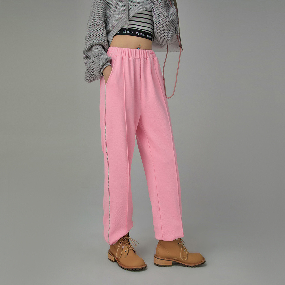 地素烫钻长裤春秋运动休闲棉质阔腿裤女 771723
