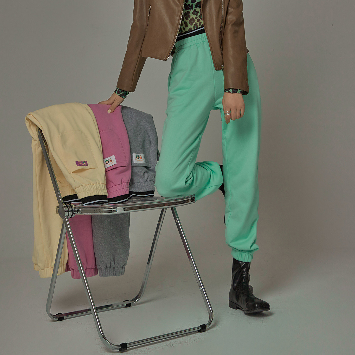 松紧腰束脚休闲裤女春秋小个子卫裤撞色运动长裤子 365395