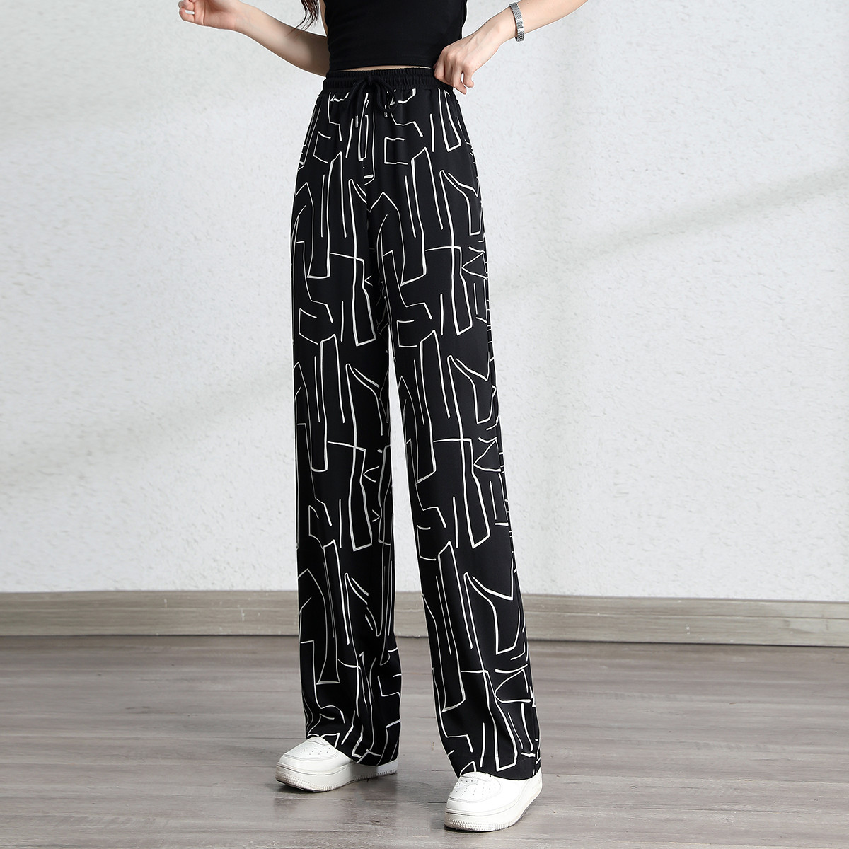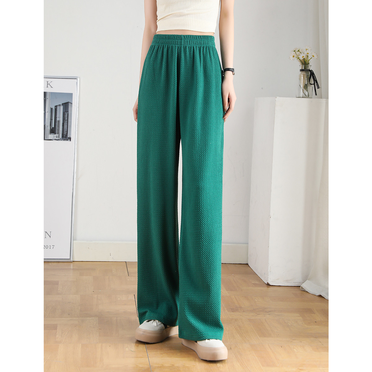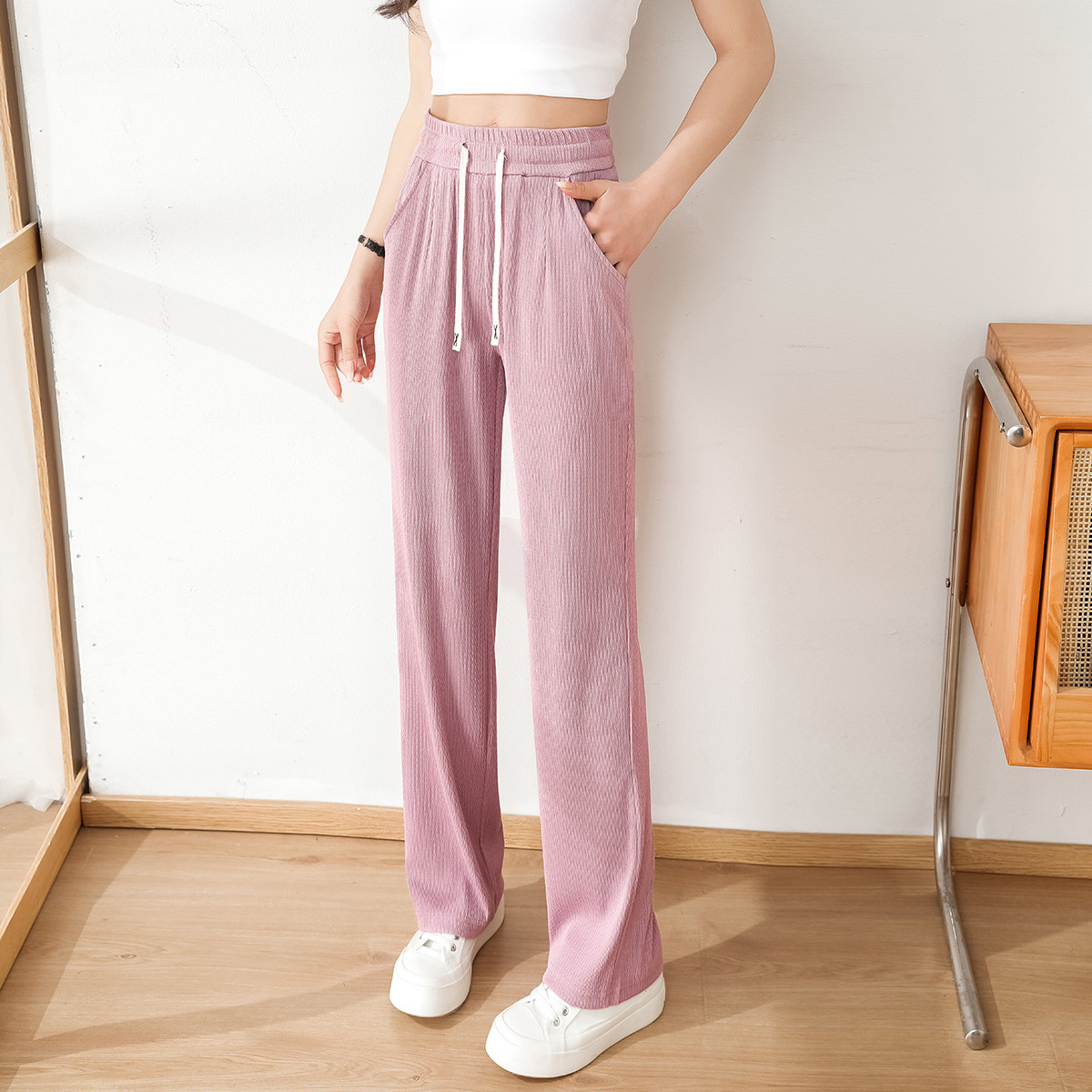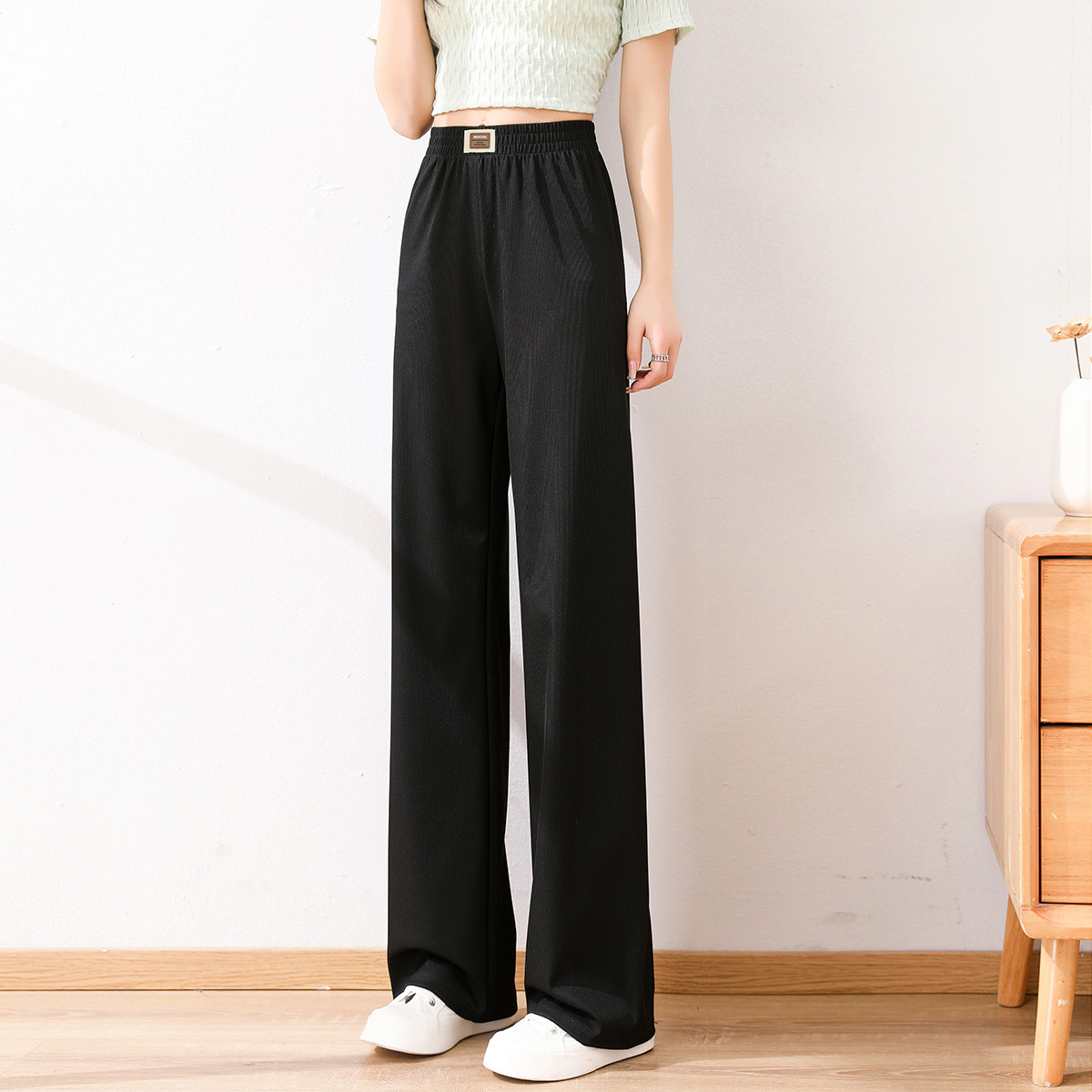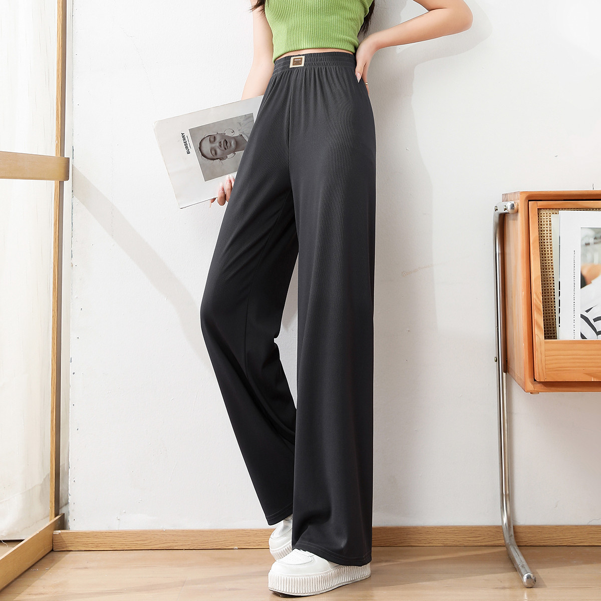 款夏季薄款冰丝窄版阔腿裤女高腰垂感针织休闲直筒裤 858328