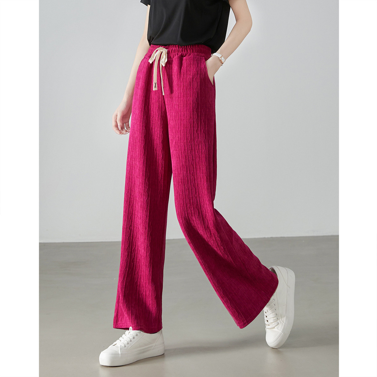 【流水纹抽绳阔腿裤】秋中腰宽松微弹长裤系绳女式休闲裤 291265