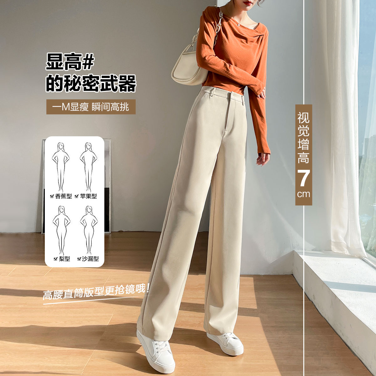 【洒脱风度】春季静奢通勤高腰直筒西装裤藏肉窄版女式阔腿休闲裤 369089