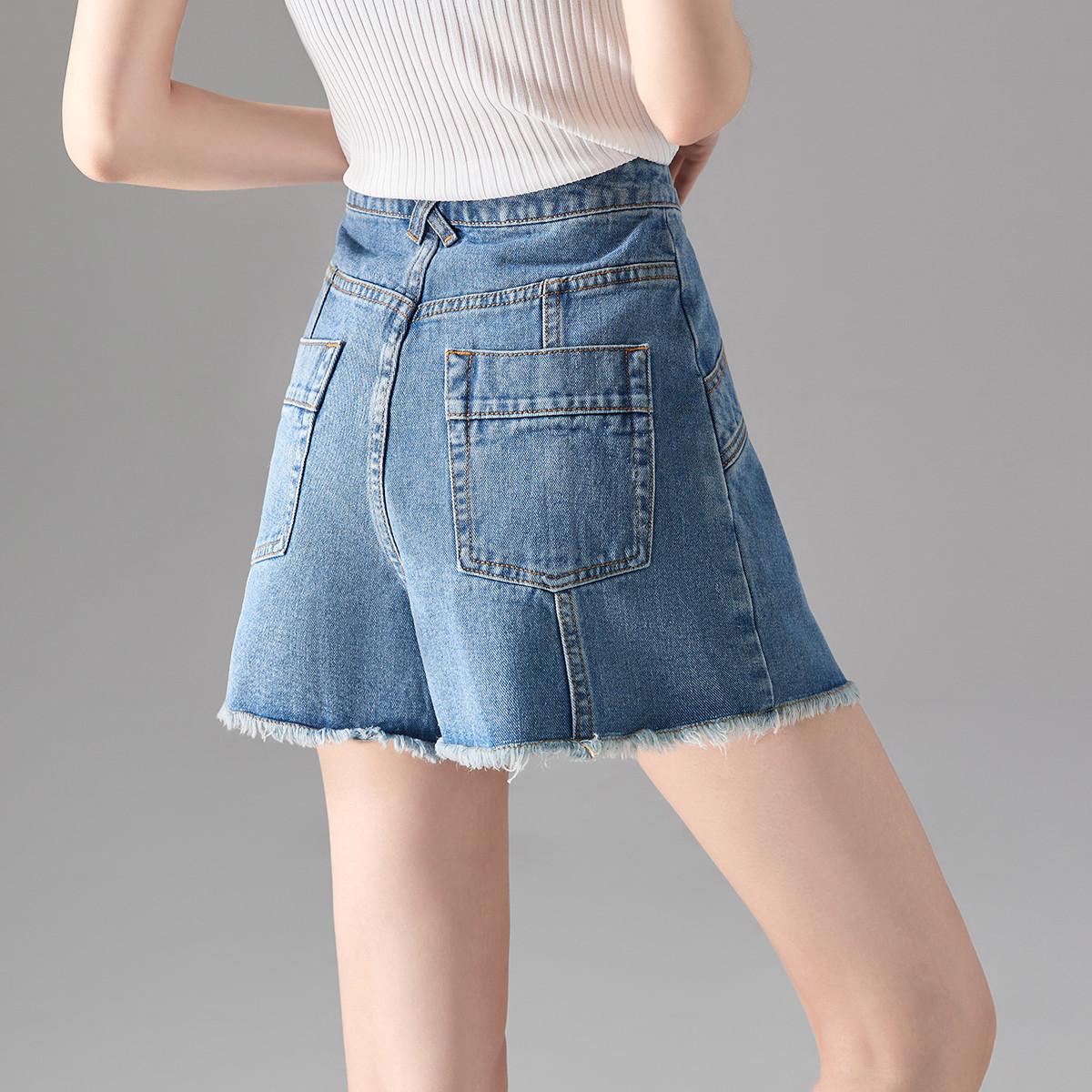 【秒变竹竿腿】夏季休闲清新毛边裸感显瘦牛仔喇叭裤子女短裤 000065
