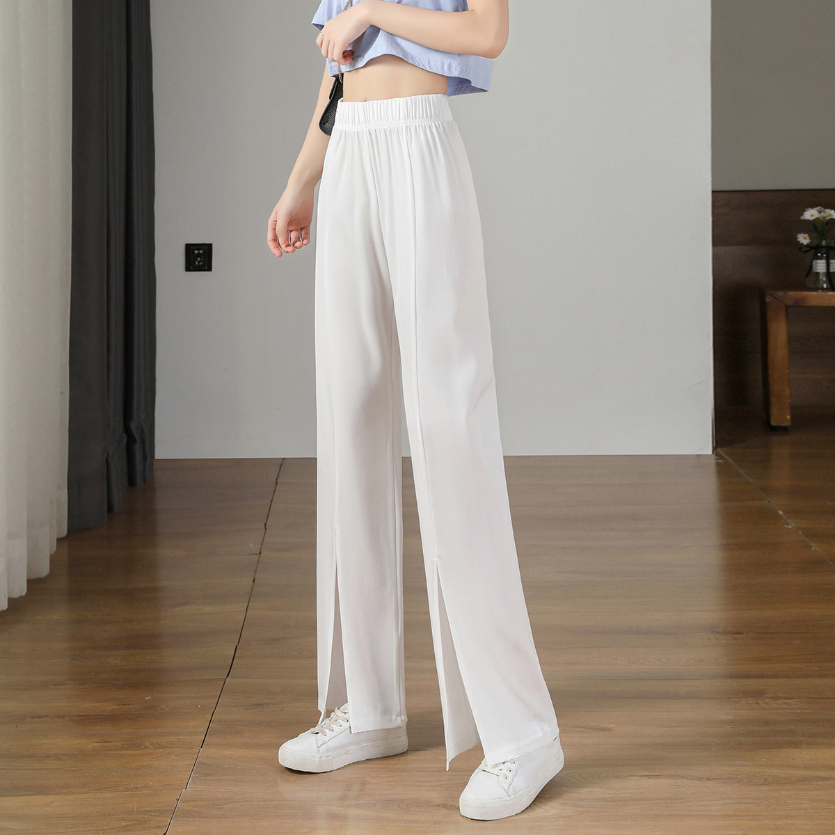 开叉高腰时尚百搭阔腿裤女夏季轻薄宽松垂感直筒休闲裤 630936
