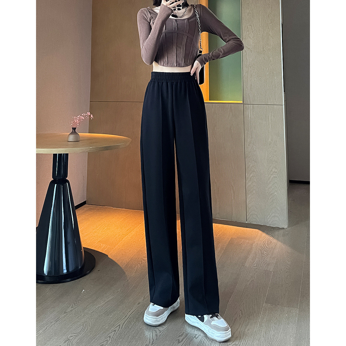 直筒裤女夏季百搭坠感阔腿裤女显瘦高腰窄版休闲裤 163352