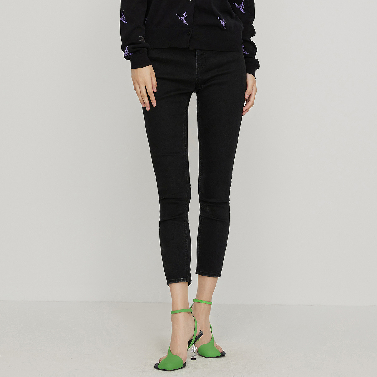 春牛仔裤水洗修身休闲自然腰九分铅笔裤女 274955