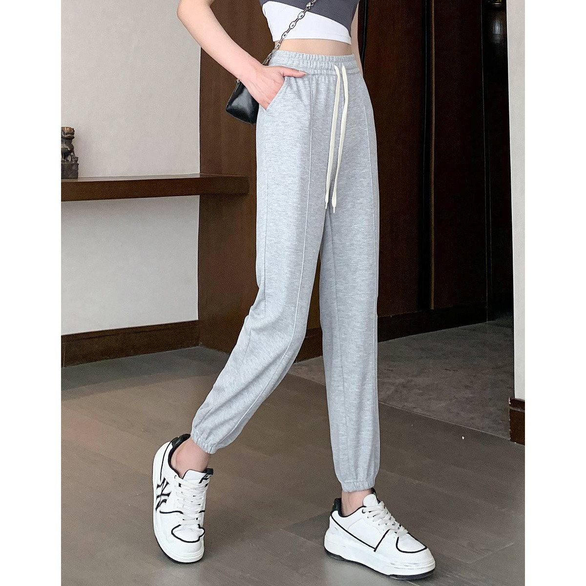 【简约抽绳卫裤】春秋竖纹松紧腰长裤微弹休闲裤子女裤 225153