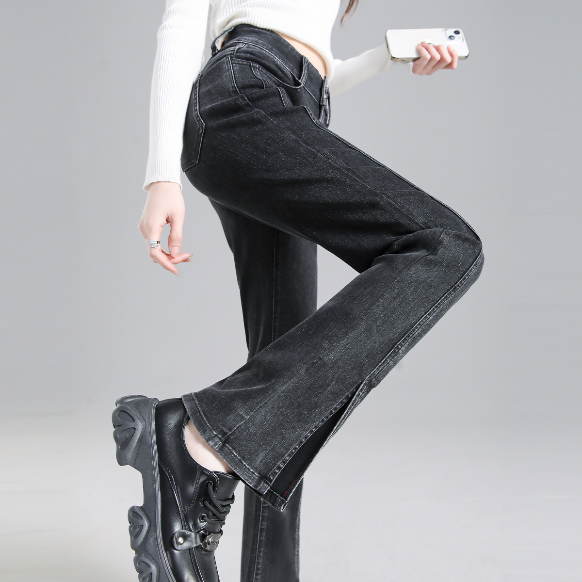 【甜美风微喇裤】春款女装牛仔裤子女百搭弹力修身高腰喇叭长裤 571265