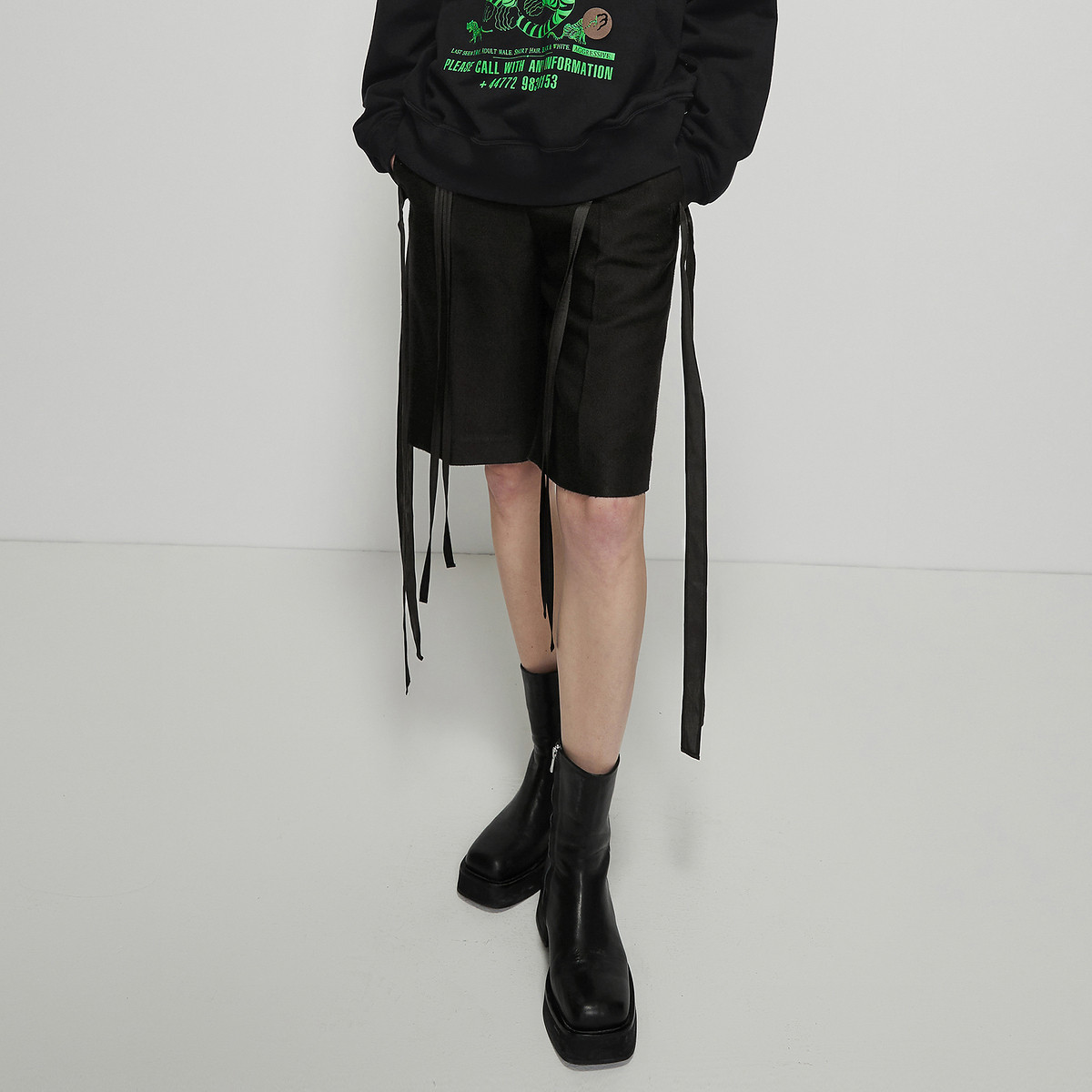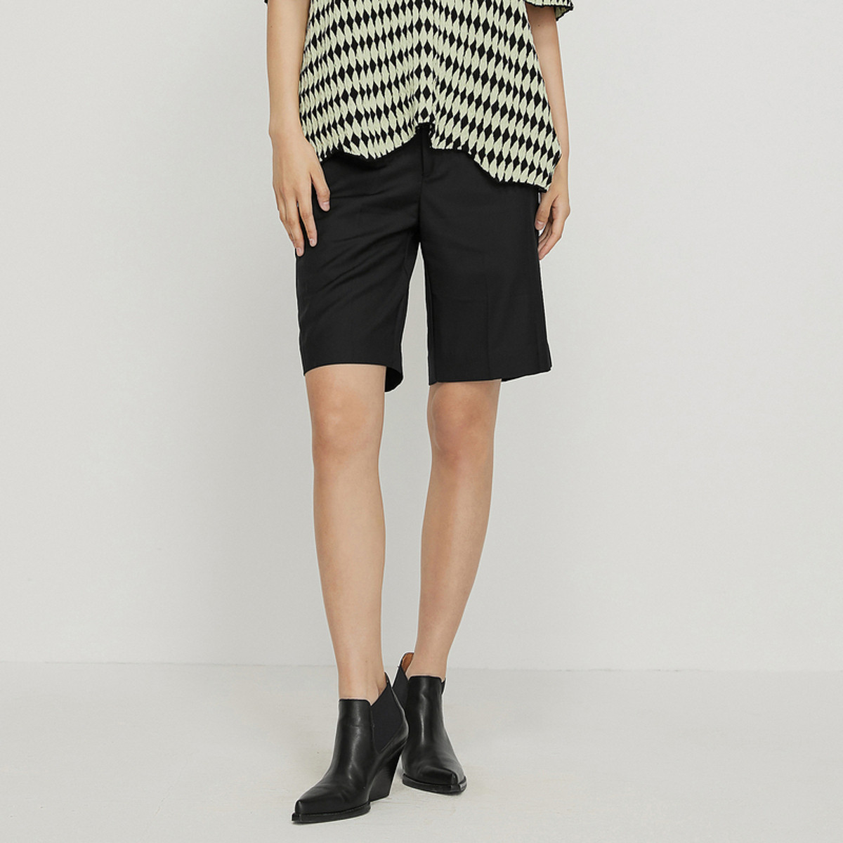 地素环保皮短裤春秋季直筒简约通勤休闲短裤女 725899