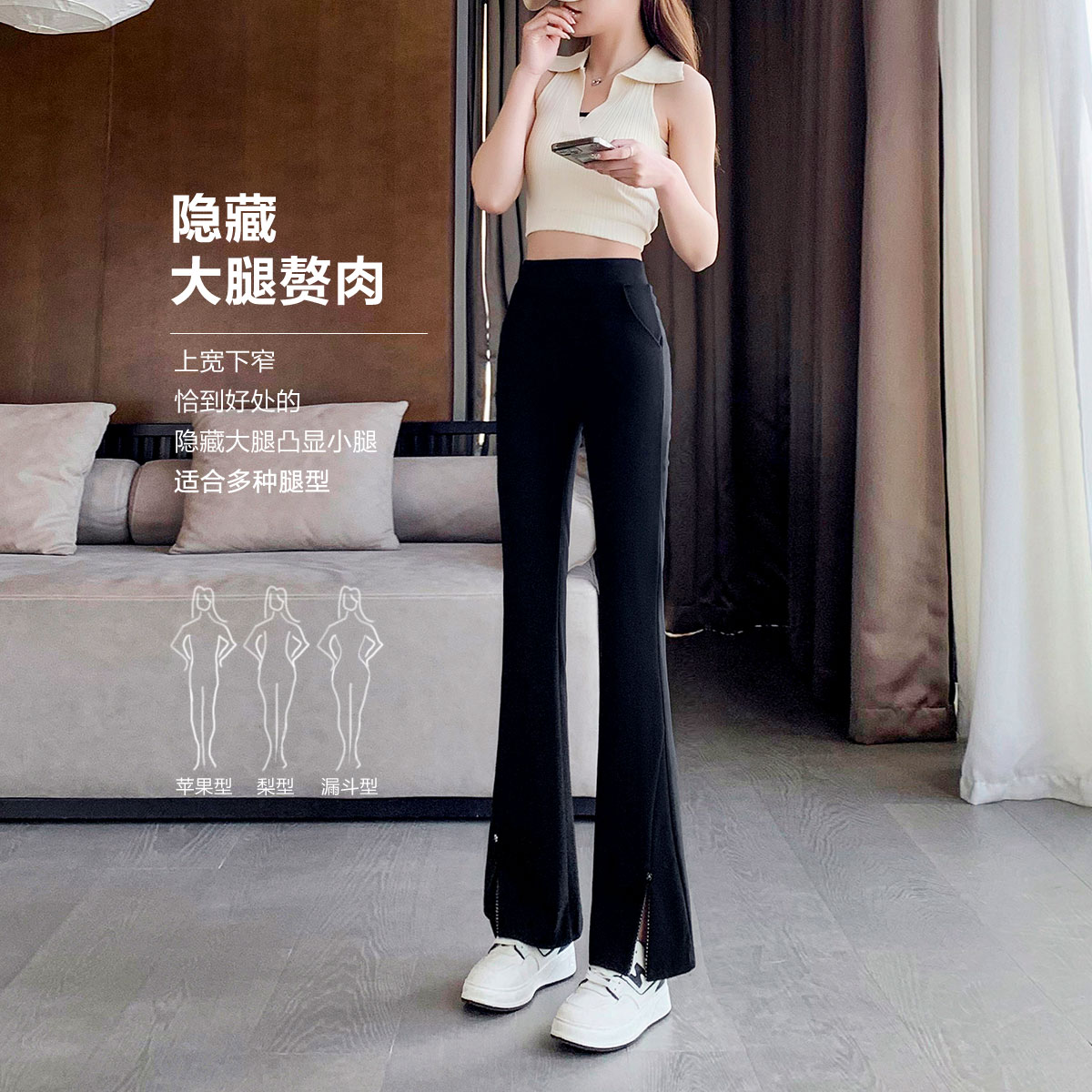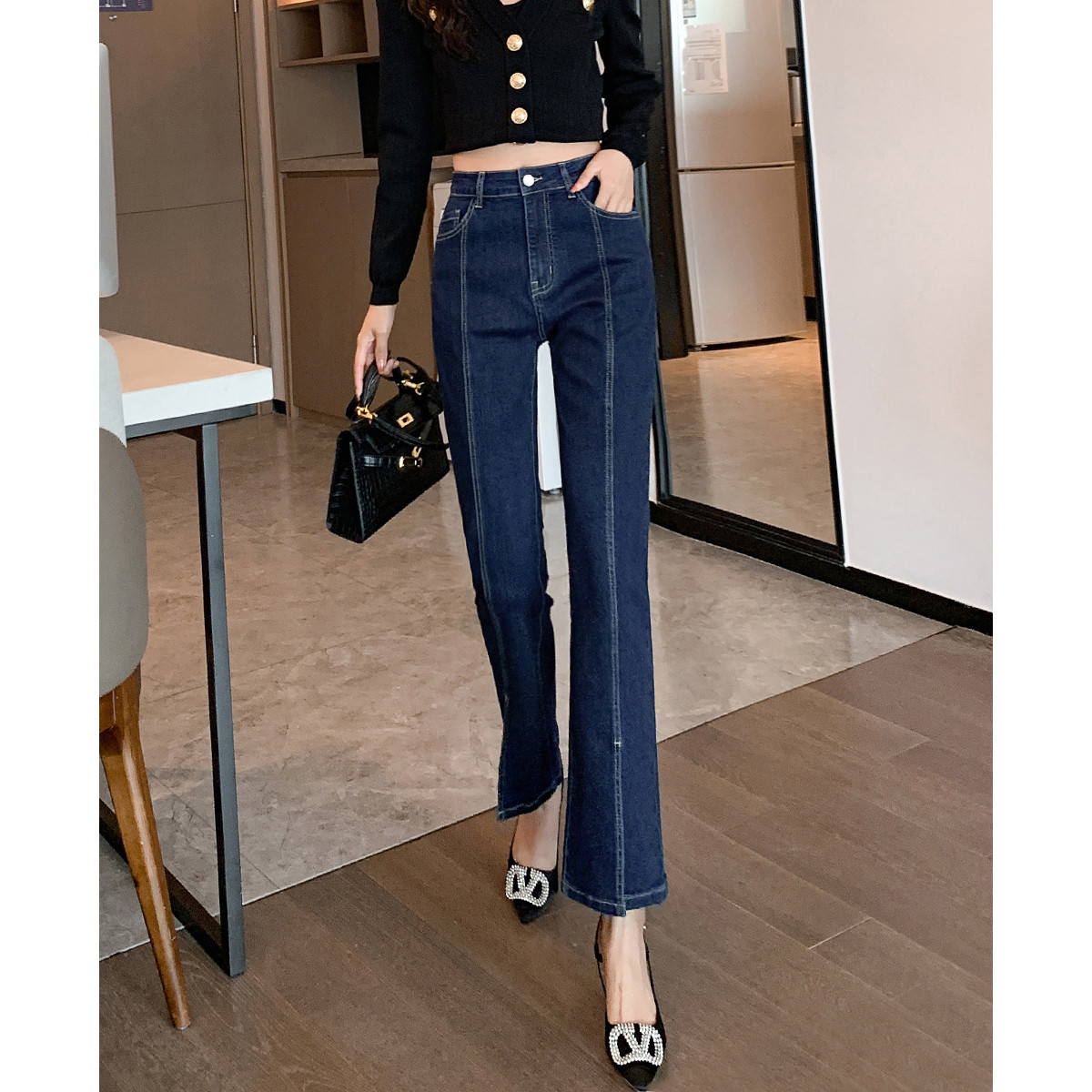 【气质9分牛仔喇叭裤】春秋中腰开衩微弹牛仔裤子女裤 838081