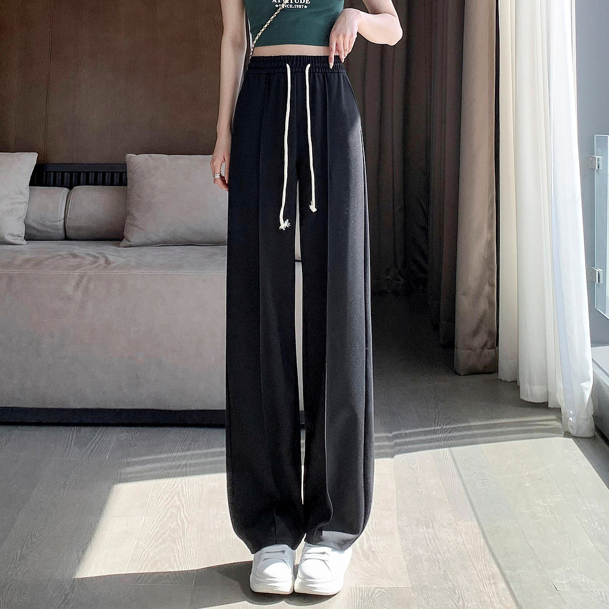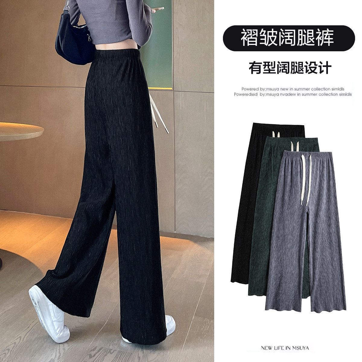 【褶皱阔腿裤】秋季中腰宽松长裤子女系绳阔腿女式休闲裤 532033