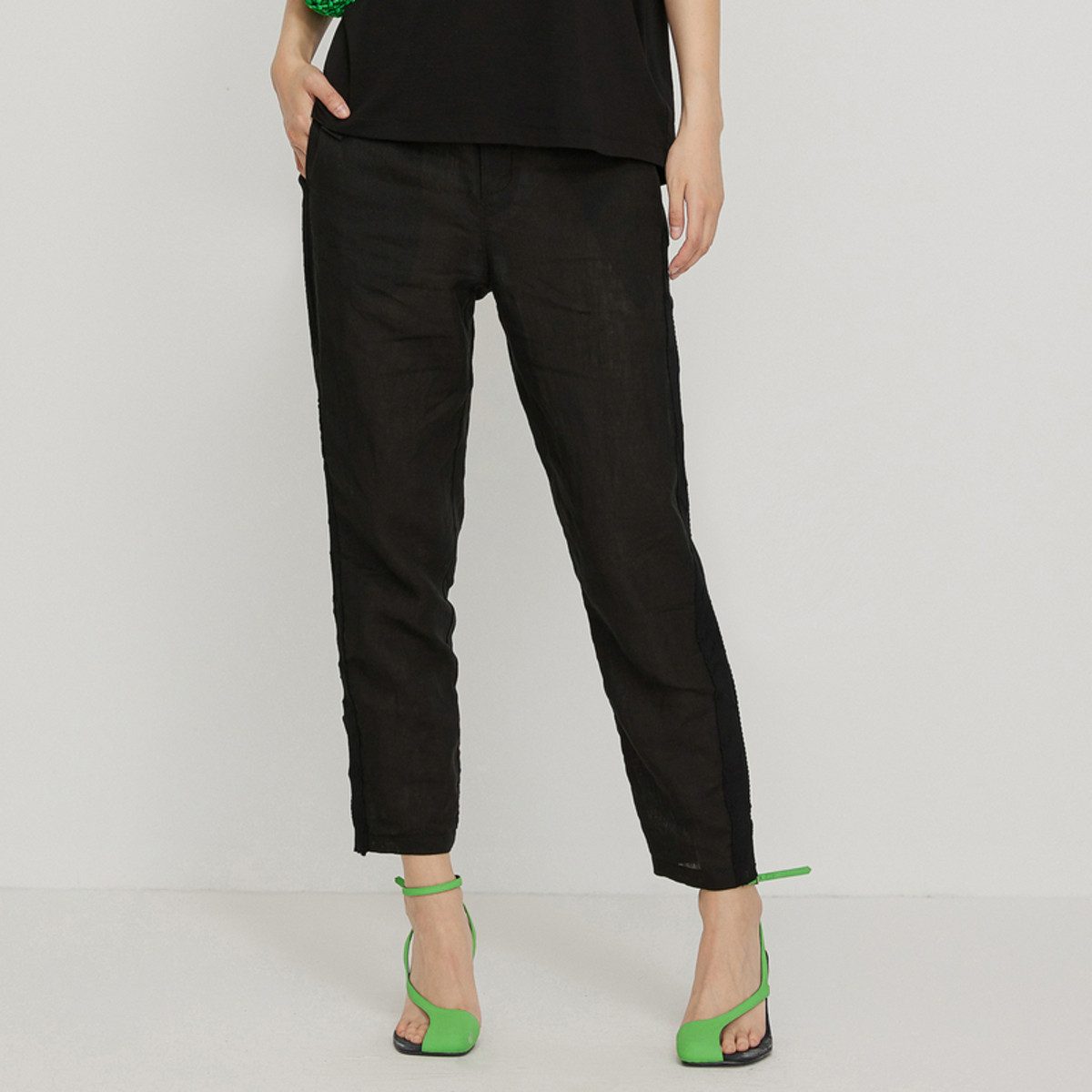 夏季薄款透气高腰气质时尚通勤百搭金属装饰直筒休闲裤女 793439