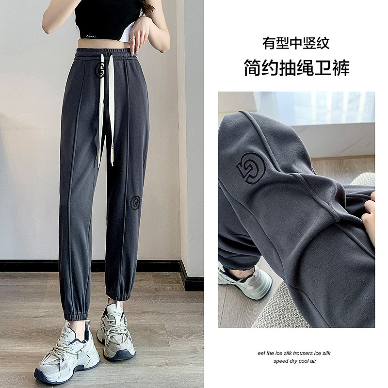 【字母印花】秋季宽松微弹抽绳贴袋针织束脚裤子女秋 464705