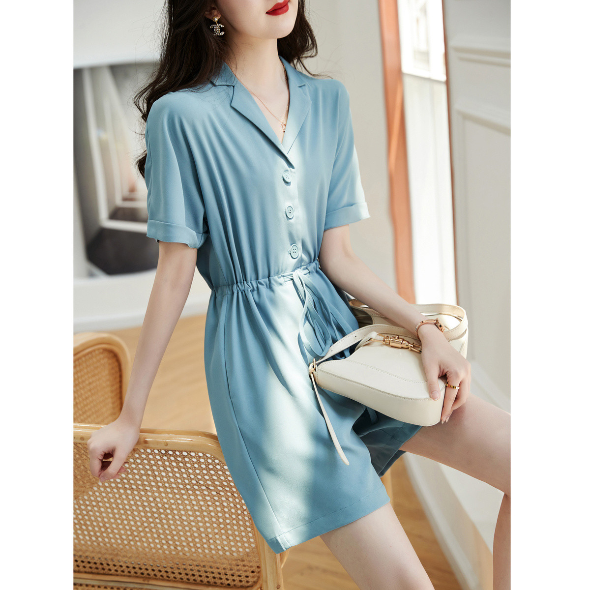 【抽绳连体裤】夏季西装领五分袖三粒扣连袖H型连体裤 501313