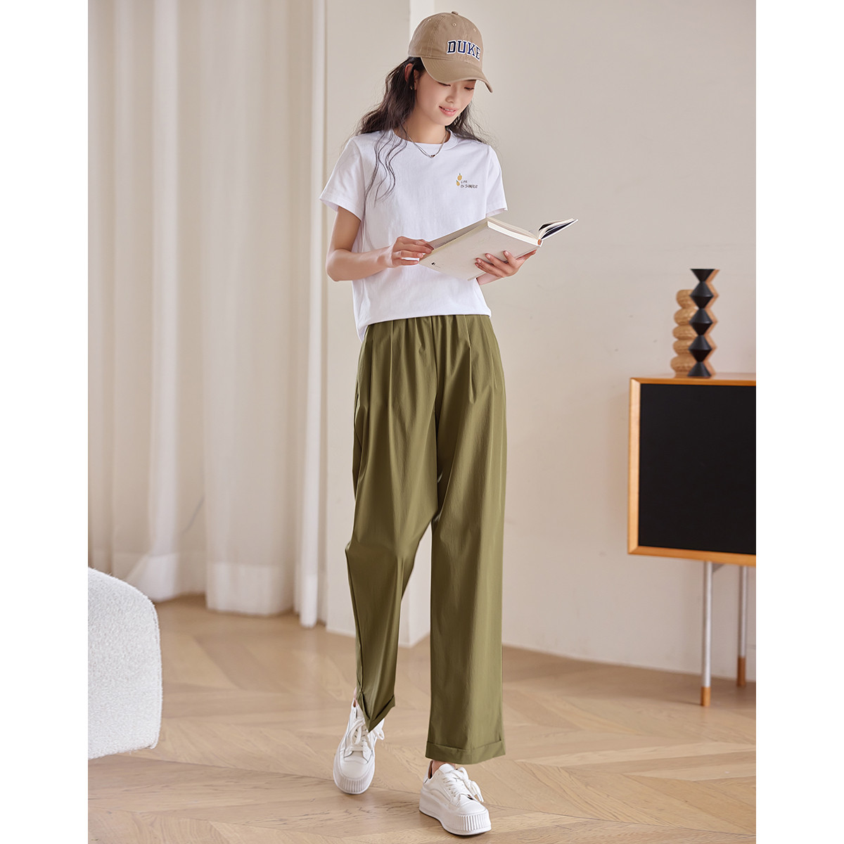 【松紧腰阔腿裤】夏季透气长裤子女丝滑女裤直筒休闲裤 629505