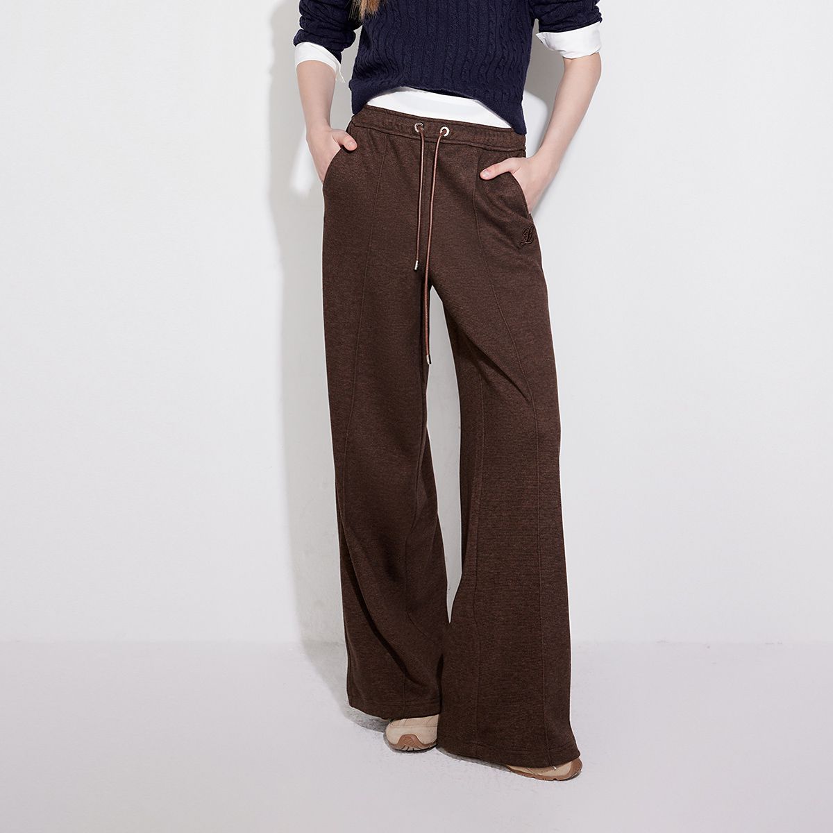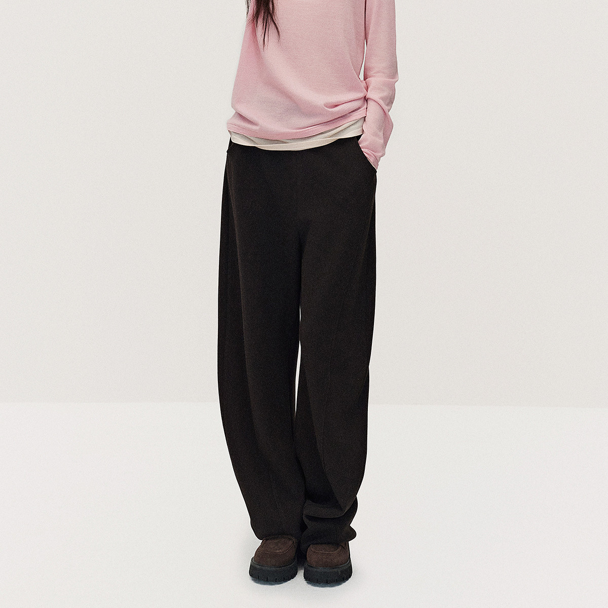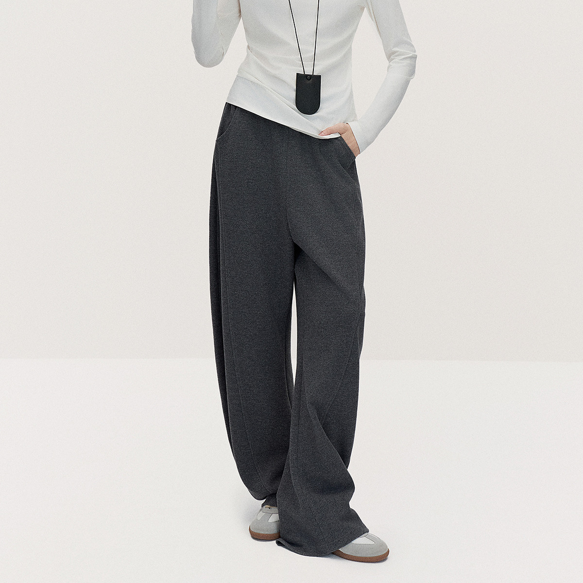 春装 宽松运动风时尚别致弯刀阔腿毛织长裤女 911887