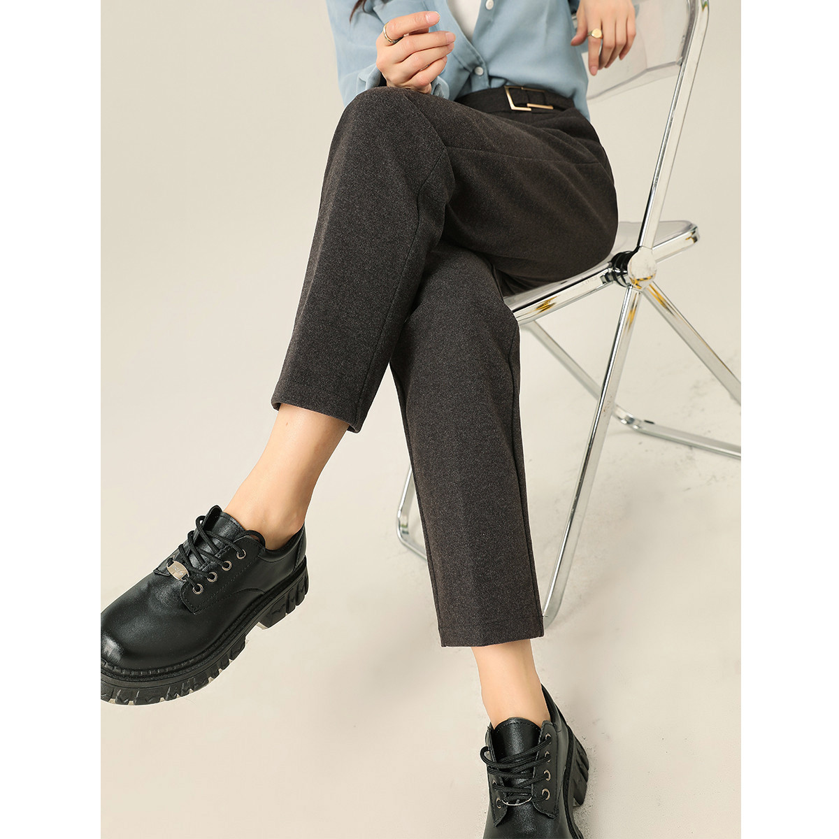 春款港风呢子加厚九分裤女时尚保暖显瘦锥形裤百搭休闲裤 669272