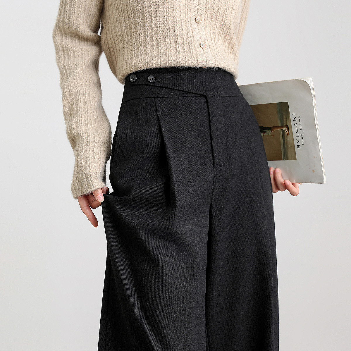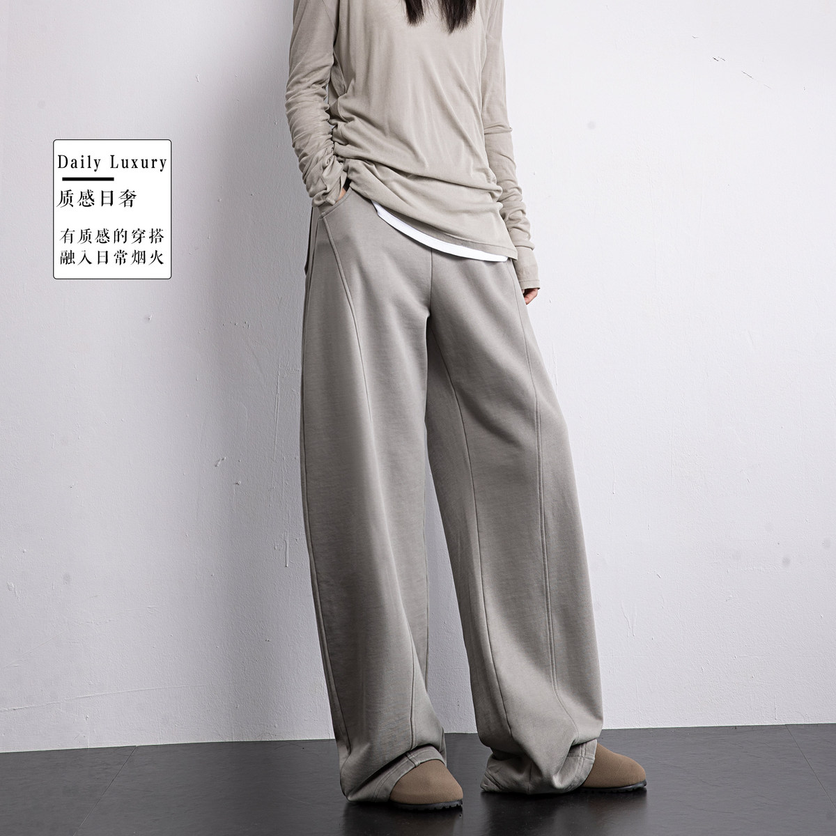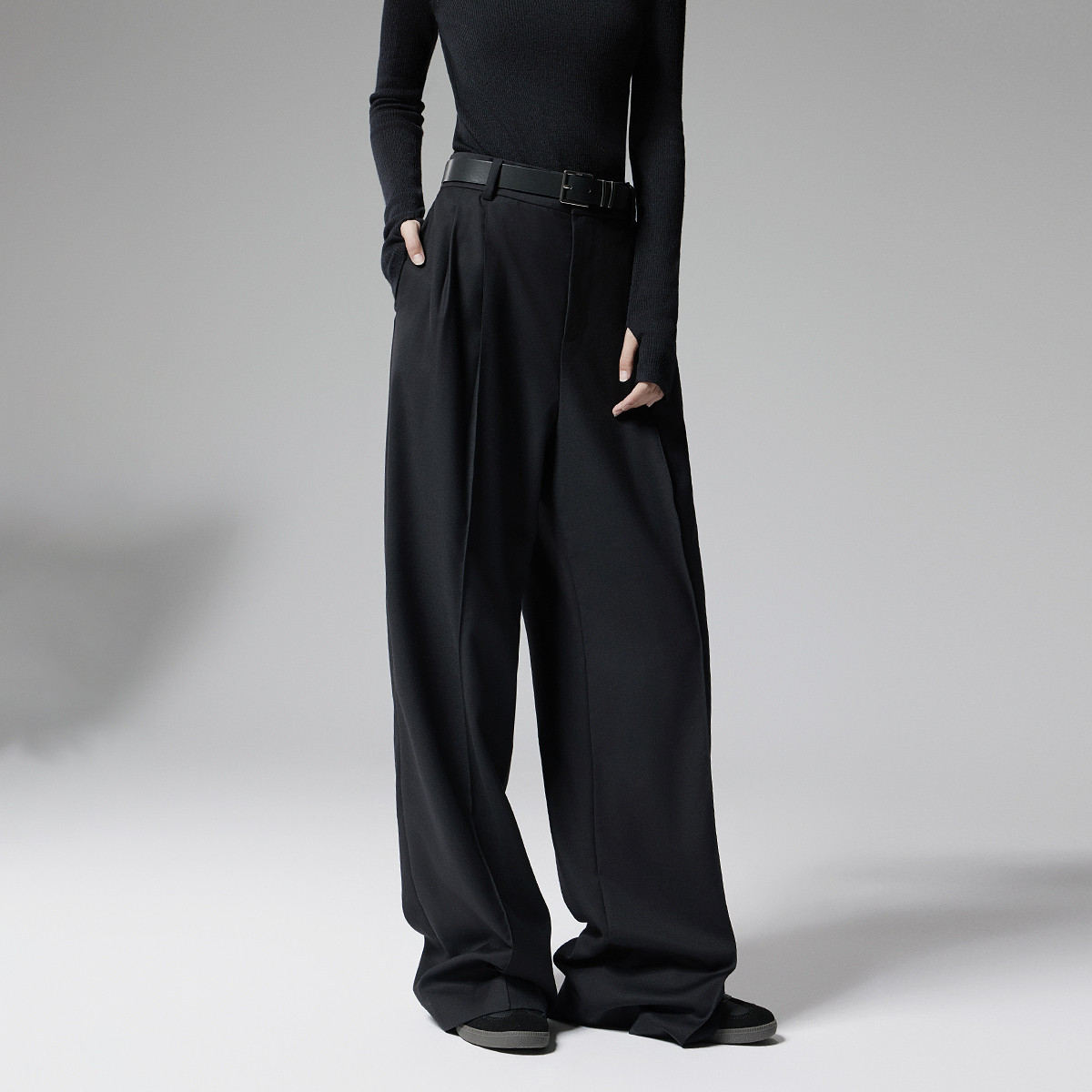春季宽松直筒西裤慵懒松弛感丝光阔腿裤女 585551