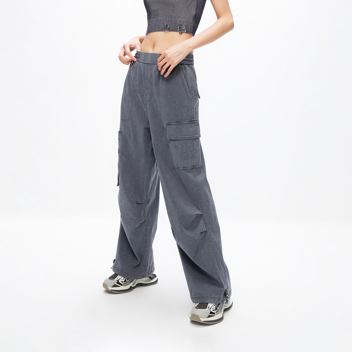 【美式复古工装裤】潮酷休闲百搭宽松阔腿裤多口袋松紧腰高腰长裤 074689