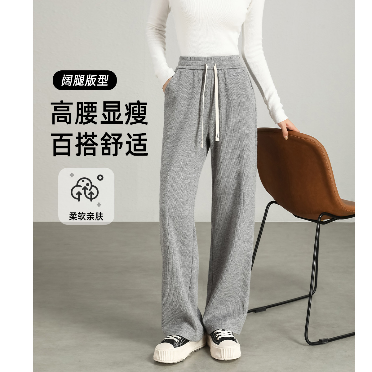秋冬休闲裤女阔腿直筒运动裤高腰显瘦垂感长裤子潮 528792
