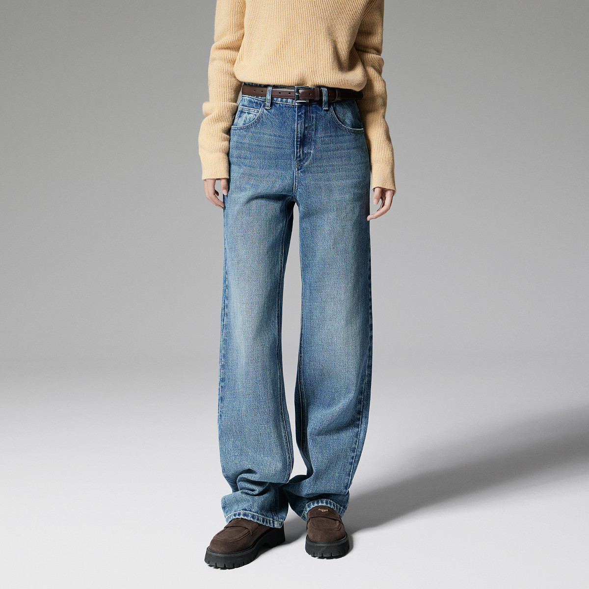 春季复古蓝色休闲显瘦重磅直筒牛仔长裤女 593743